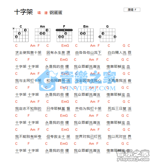 谢安琪《十字架》吉他谱,YYZJ编配出品,共有1张高清图谱,免翻页排版设计。...