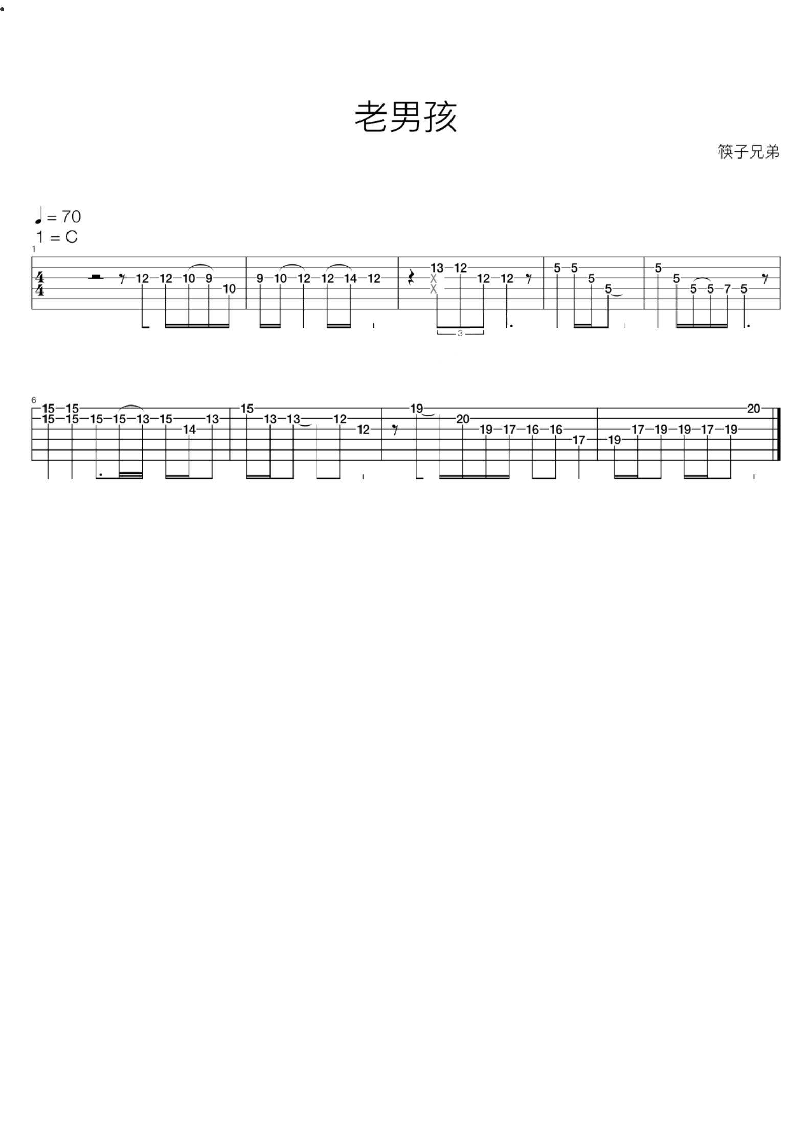 筷子兄弟《老男孩》吉他谱,共有1张高清图谱,免翻页排版设计。...