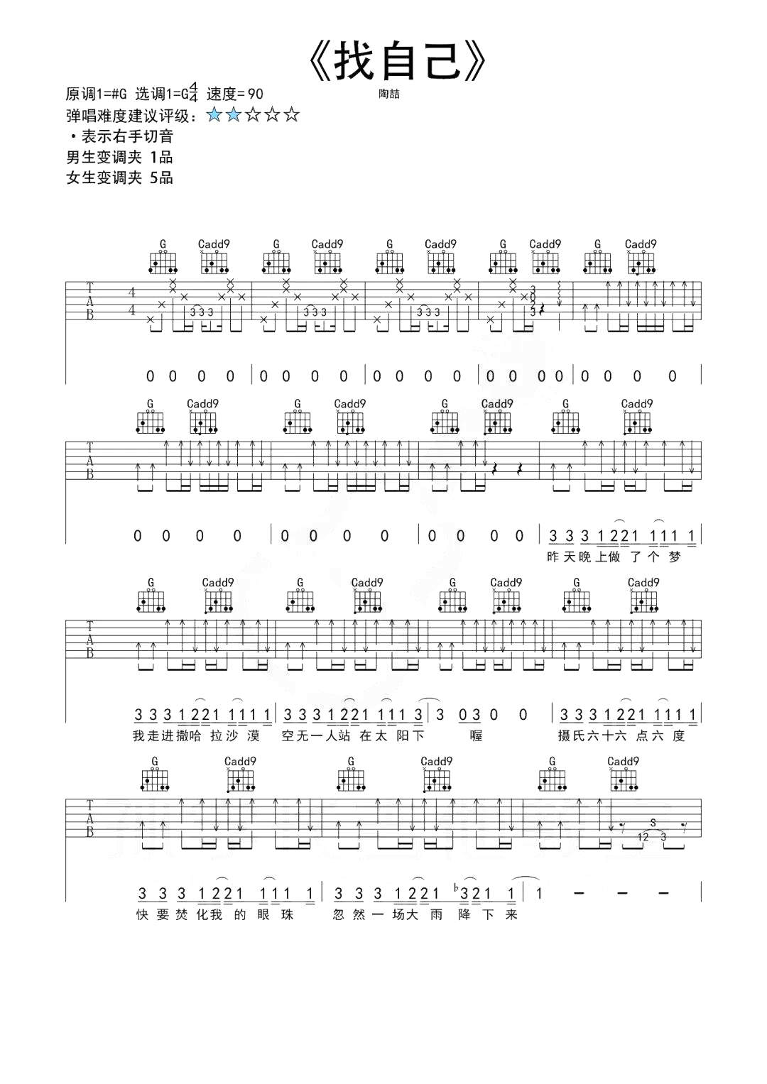吉他陶喆《找自己》吉他谱 - 完整版