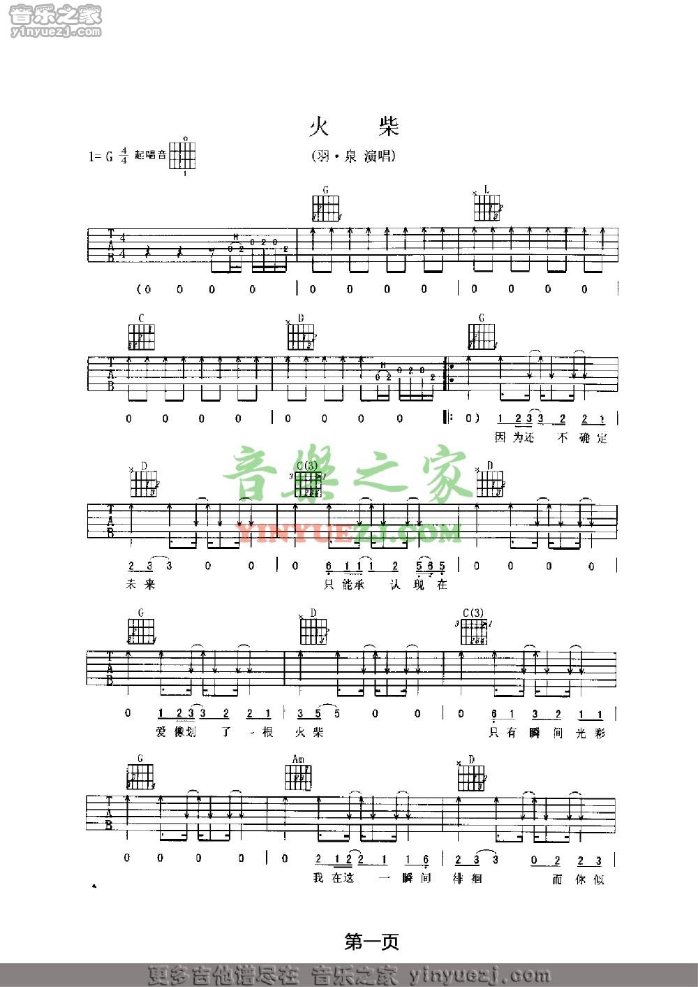 吉他羽泉《火柴》吉他谱 - 免费版