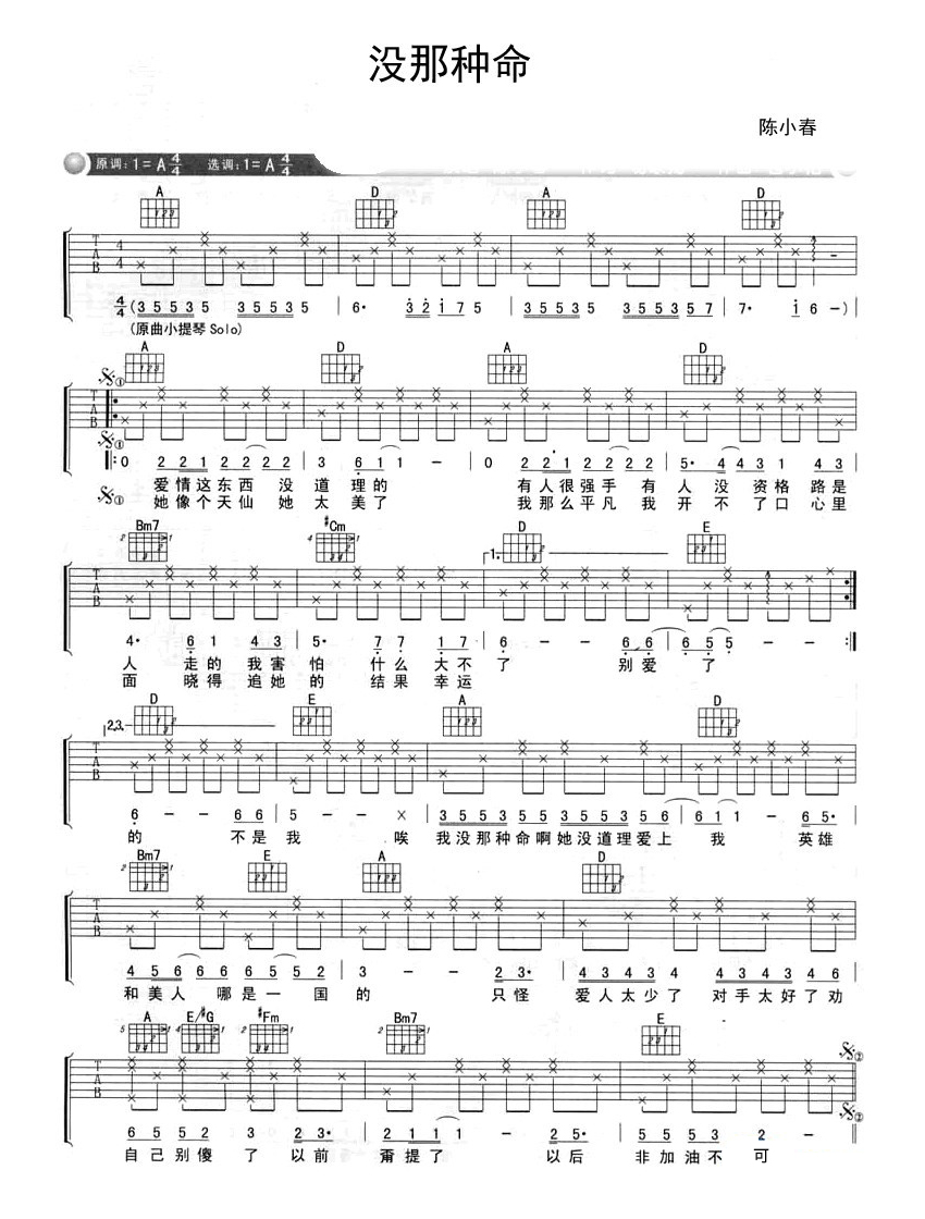 陈小春《没那种命》吉他谱,共有2张高清图谱,免翻页排版设计。...