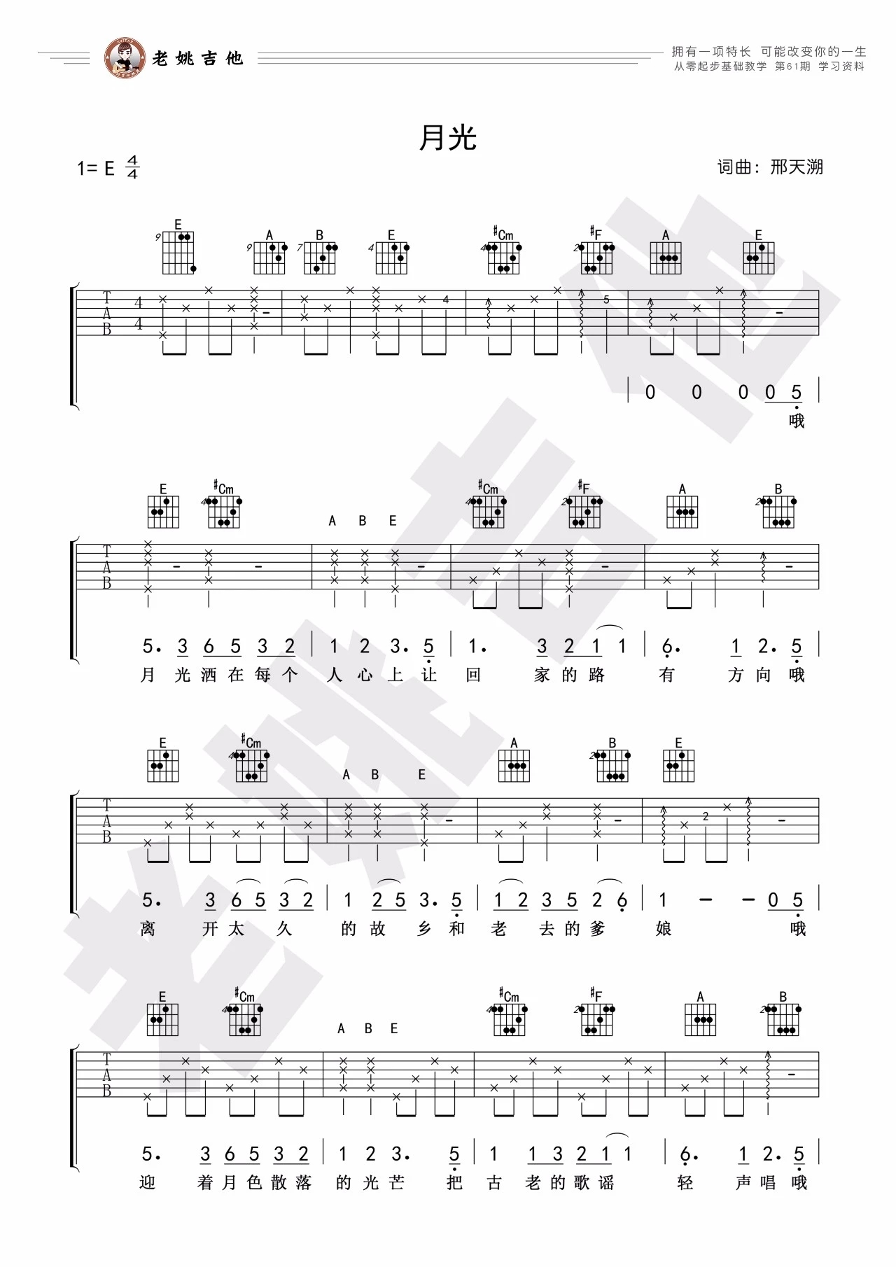 李健《月光》吉他谱,老姚吉他编配出品,共有3张高清图谱。...