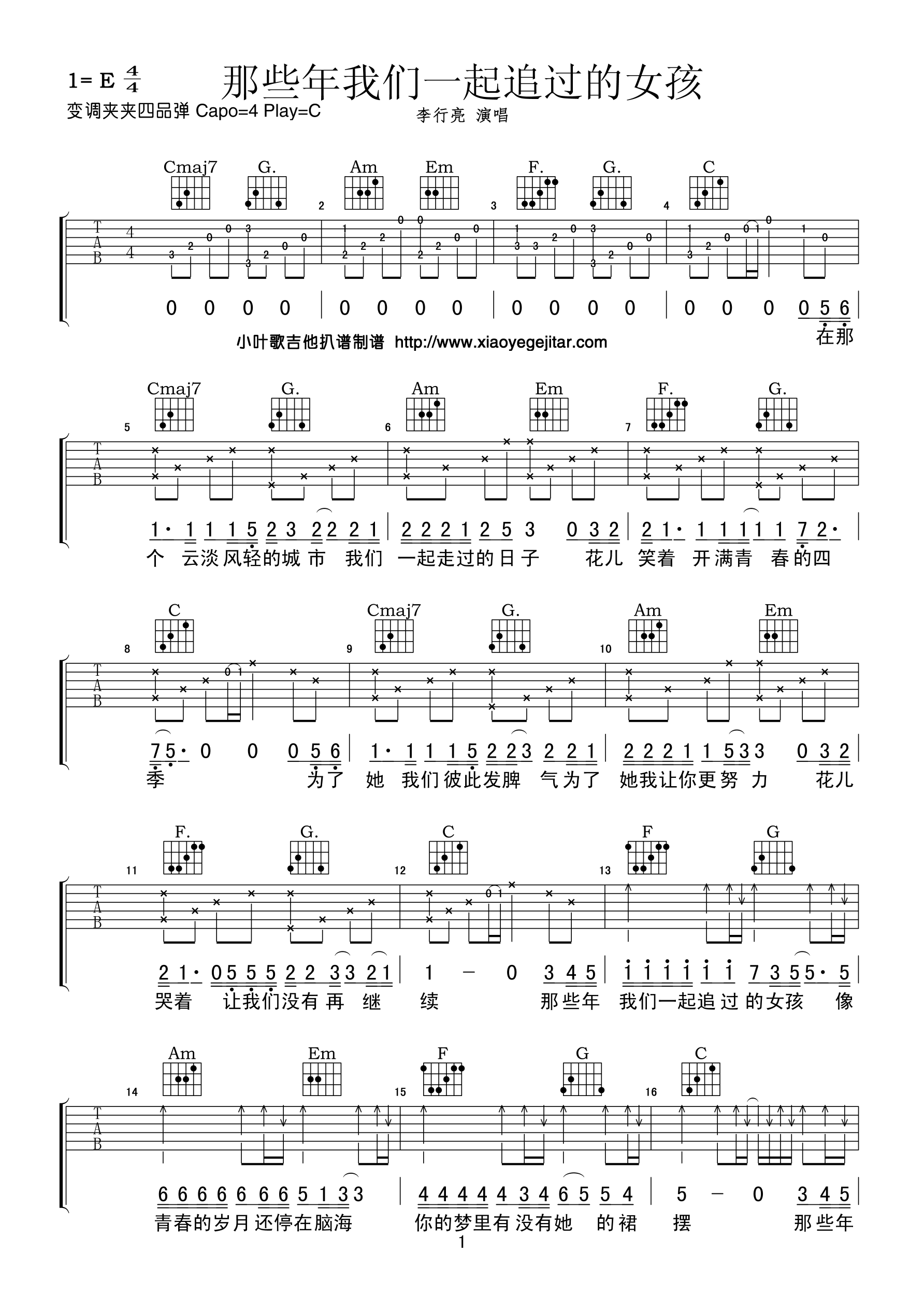 李行亮《那些年我们一起追过的女孩》吉他谱,小叶歌编配出品,共有4张高清图谱。...