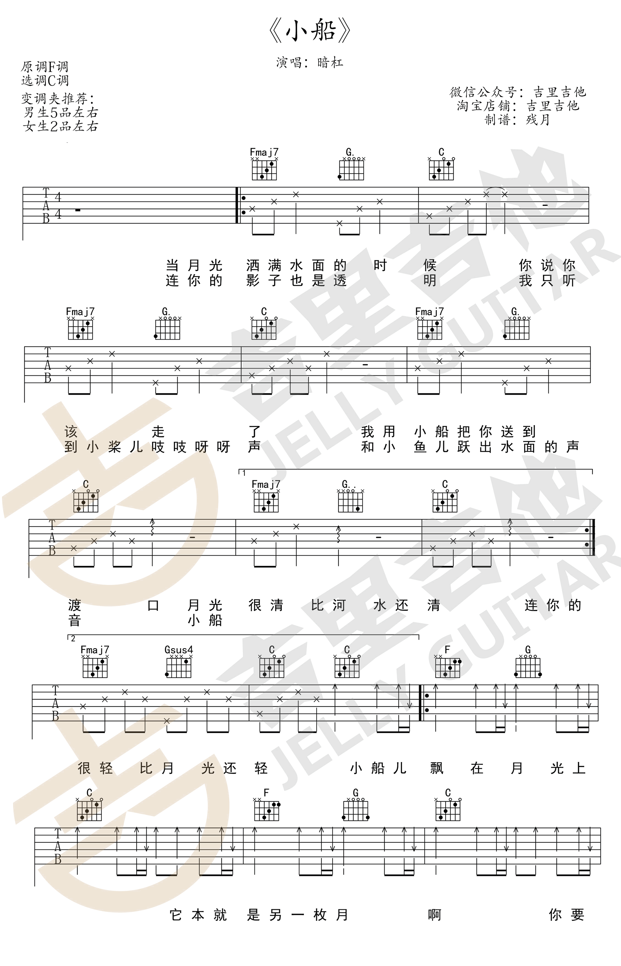 吉他暗杠《小船》吉他谱 - 好听到爆炸