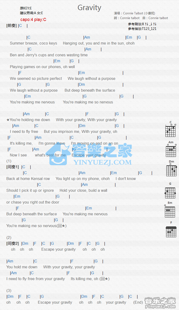 吉他ConnieTalbot《Gravity》吉他谱 - 免费版