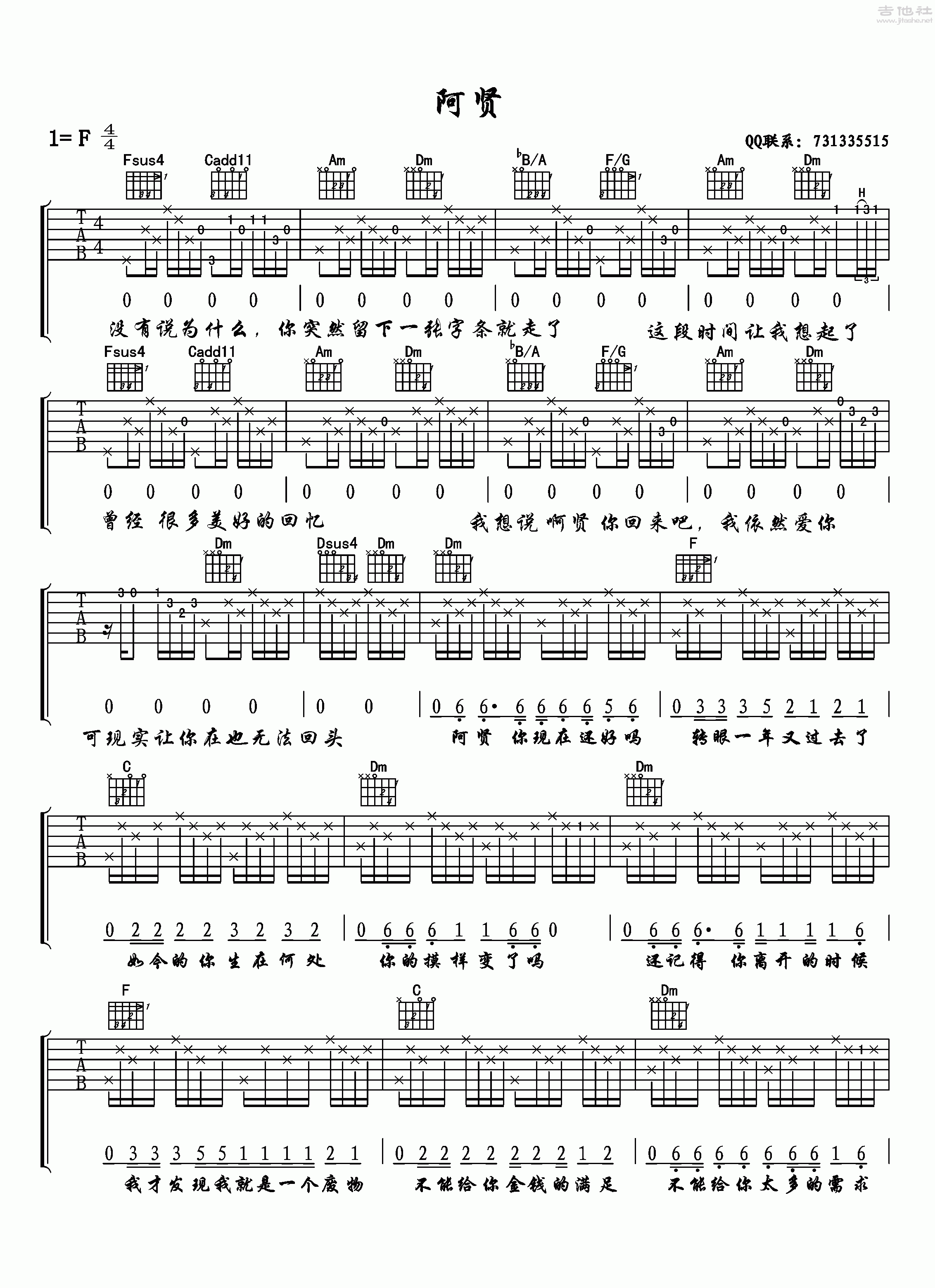 吉他《阿贤》吉他谱 - 非常多人都在弹的版本