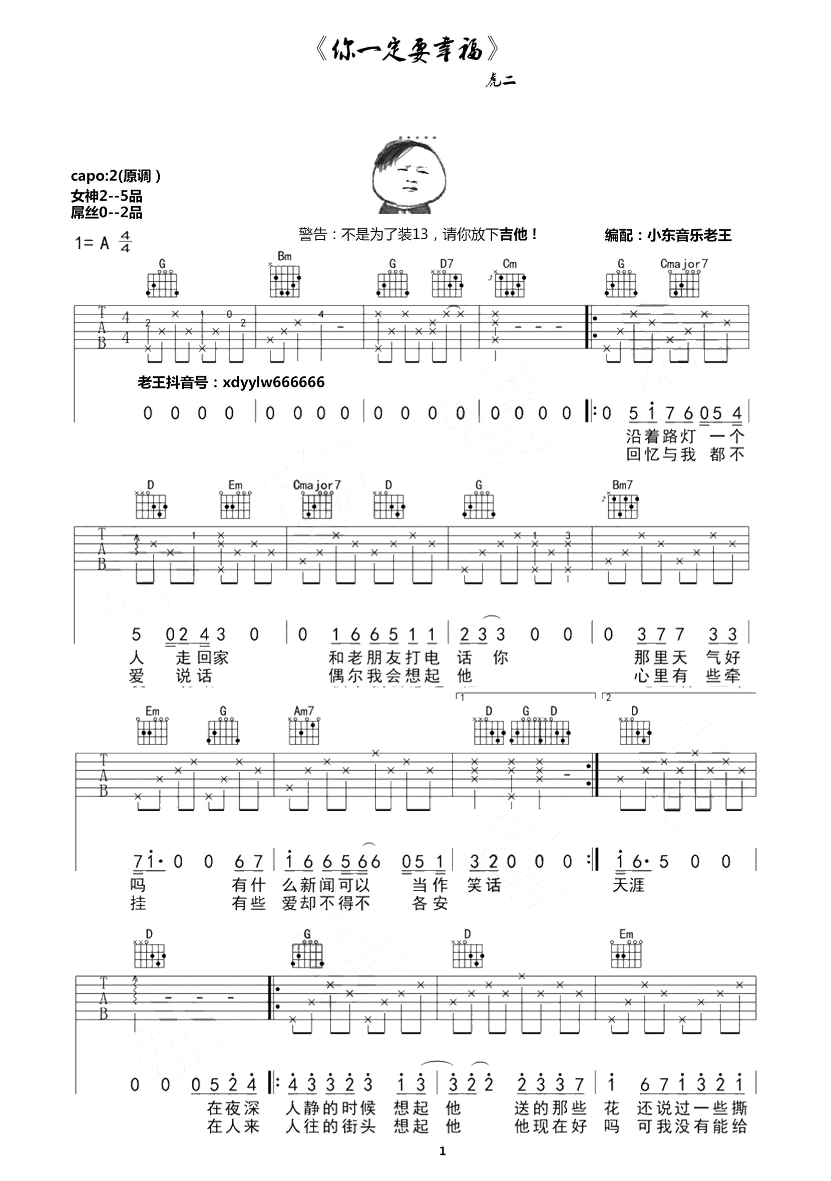 吉他虎二《你一定要幸福》吉他谱