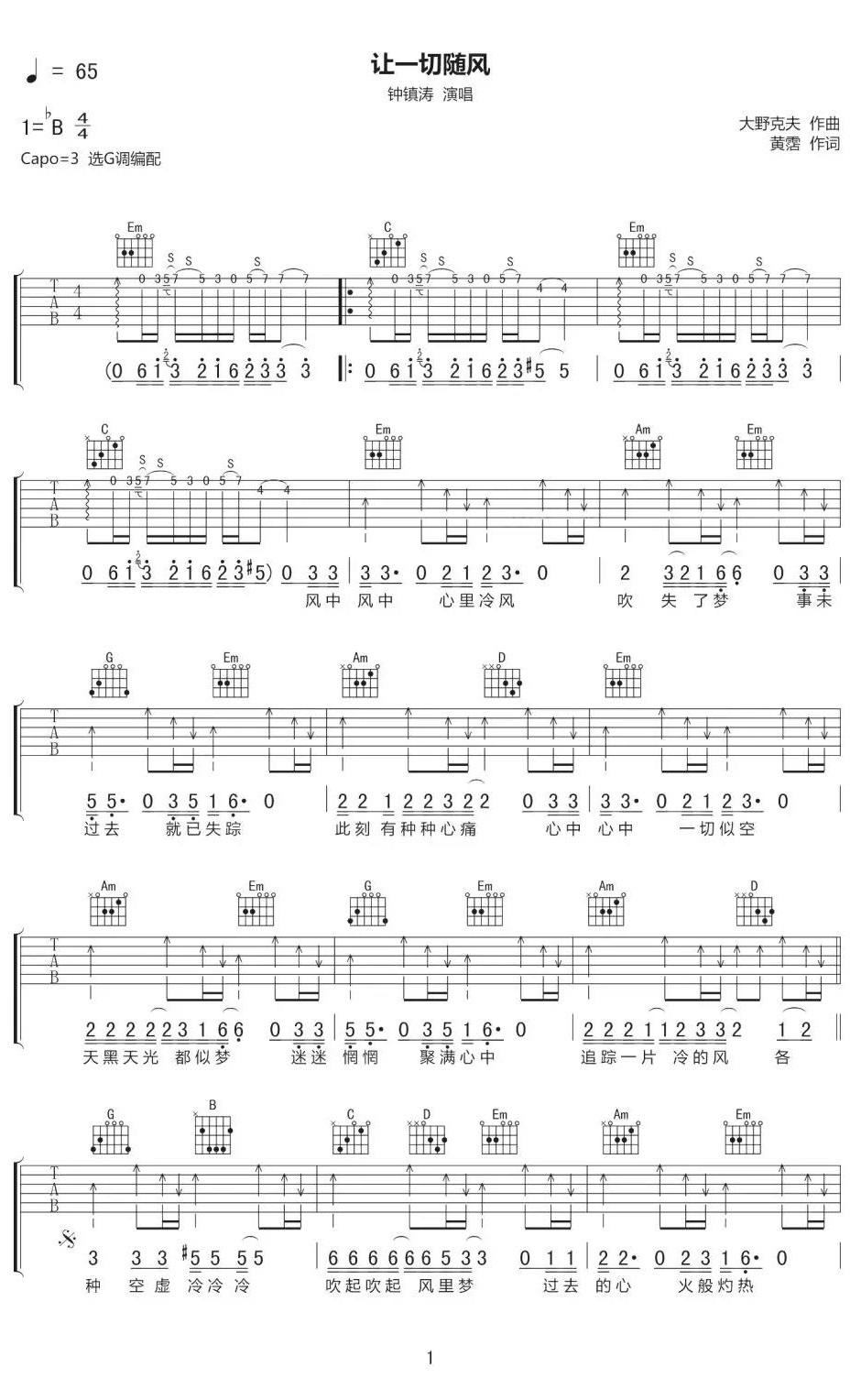 钟镇涛《让一切随风》吉他谱_G调吉他弹唱谱...