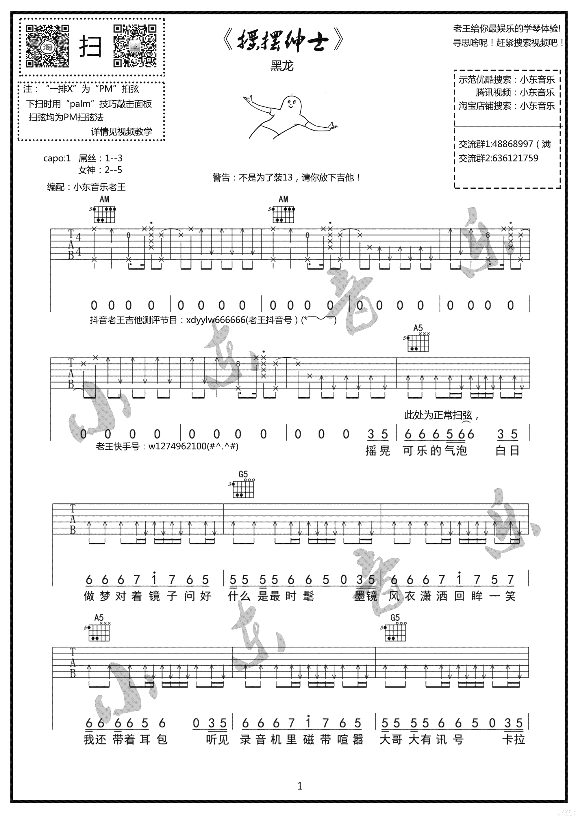 摇摆绅士吉他谱,黑龙演唱的一首网络热门歌曲,曲谱采用PM技巧,这样更接近原版的舞曲节奏。摇摆绅士吉他六线谱,CAPO夹一品,这是一首极具律动感的歌曲,有着80年代的经典复古韵味。轻快自由的旋律。让人们在热力动感中感受到时代共鸣。...