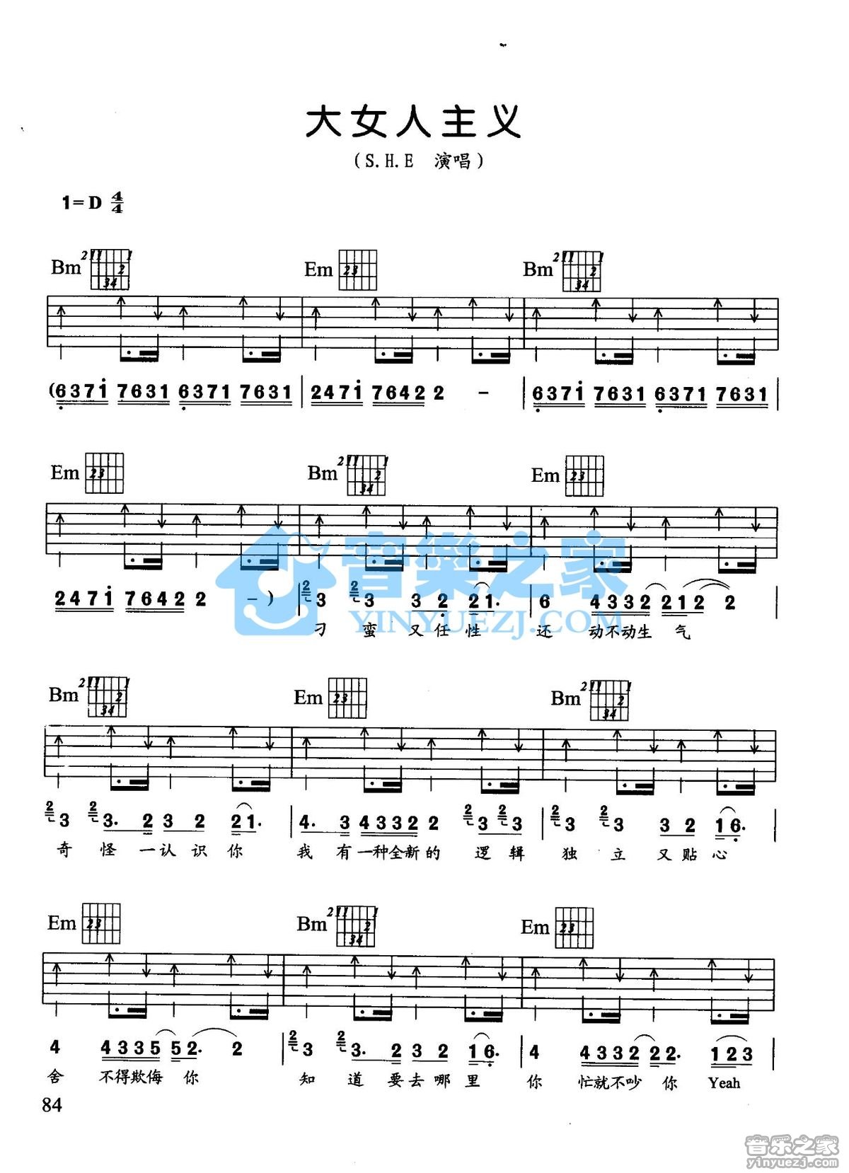 吉他S.H.E《大女人主义》吉他谱 - 很多人都在弹的版本