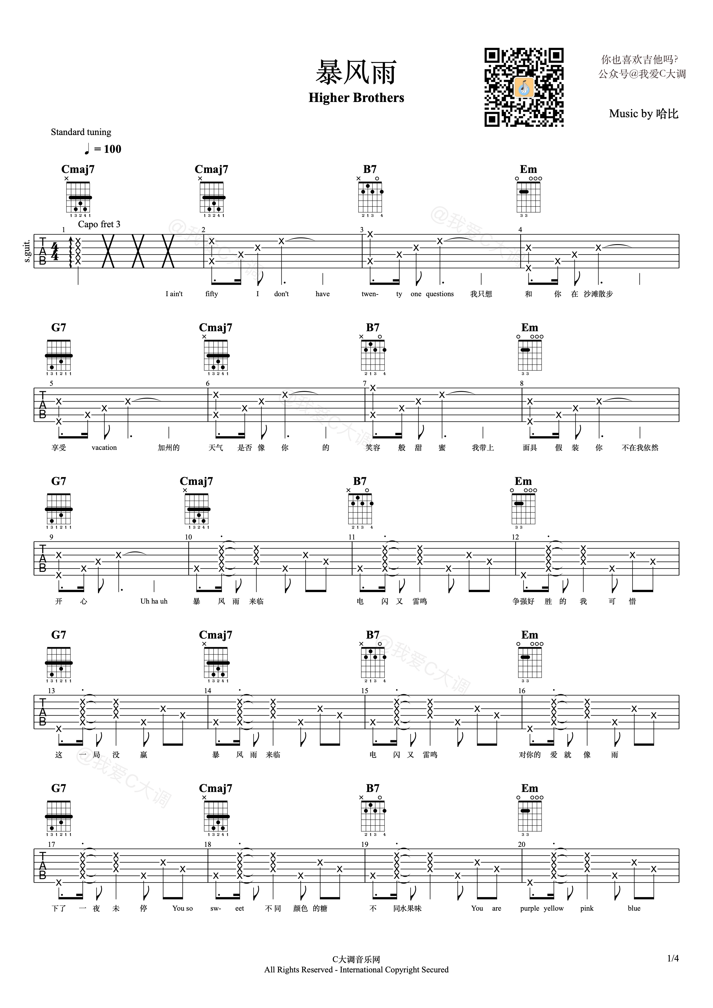 马思唯《暴风雨》吉他谱,@我爱C大调编配出品,共有4张高清图谱。...