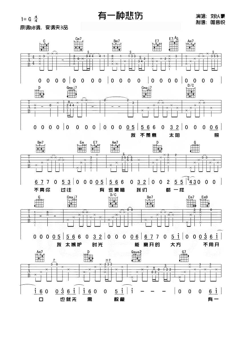 吉他刘以豪《有一种悲伤》吉他谱 - 唯音悦编配
