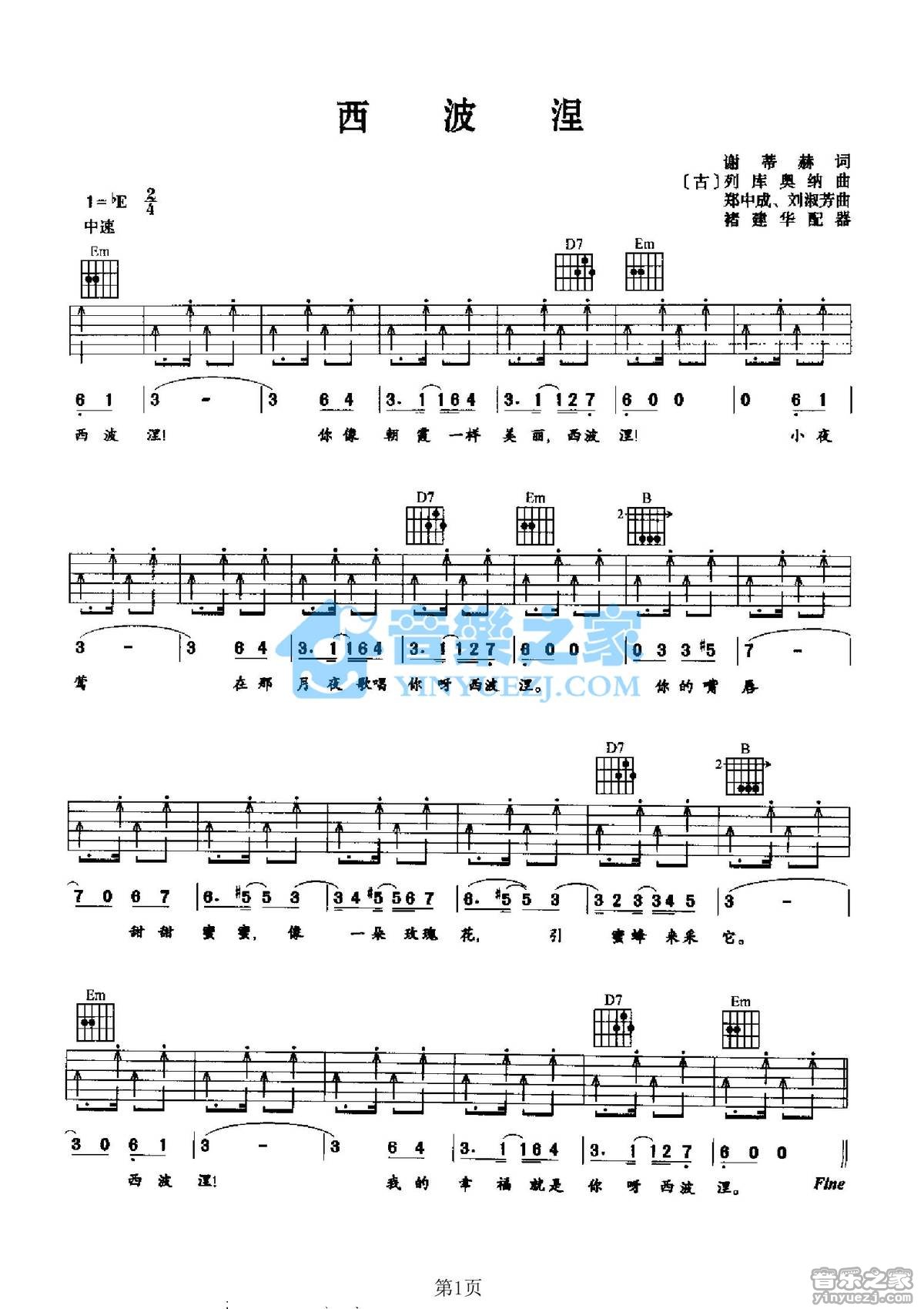 吉他著名古巴爱情歌曲《西波涅》吉他谱 - 推荐版本