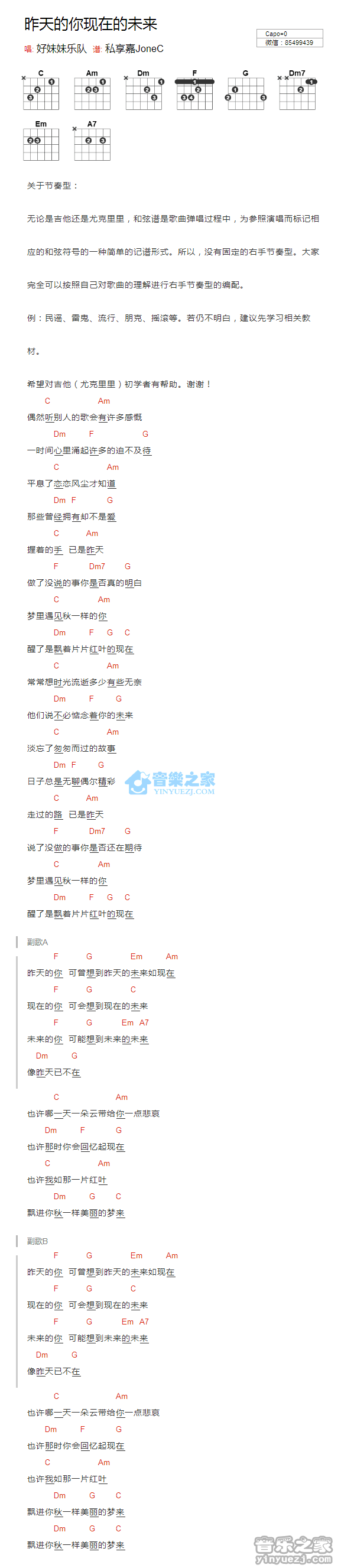《昨天的你现在的未来》吉他和弦弹唱谱...