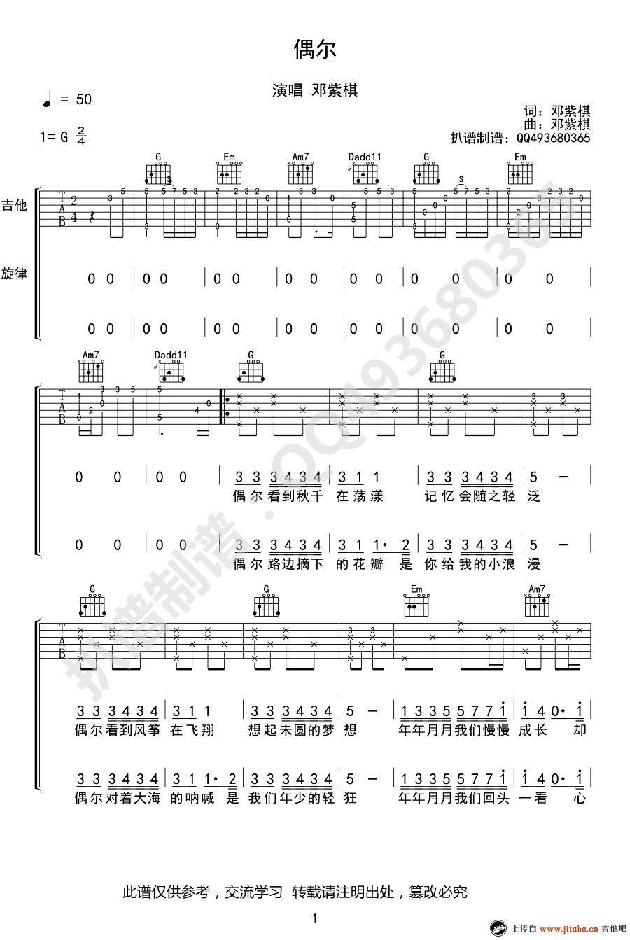 邓紫棋《偶尔》吉他谱_G调吉他弹唱谱...