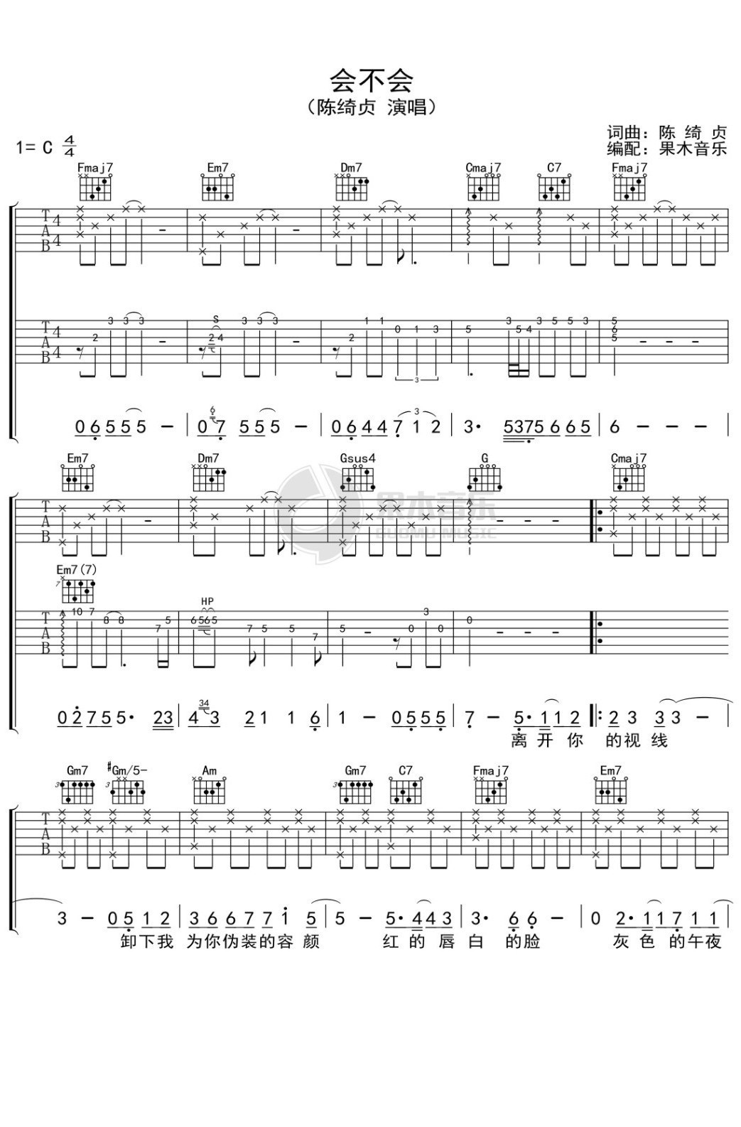 陈绮贞《会不会》吉他谱_C调吉他弹唱谱...