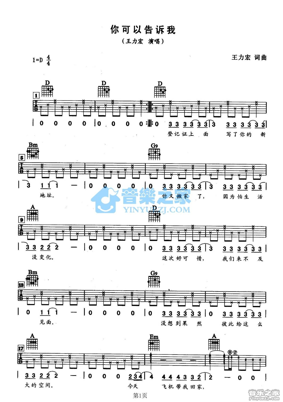 吉他王力宏《你可以告诉我》吉他谱 - 非常多人都在弹的版本