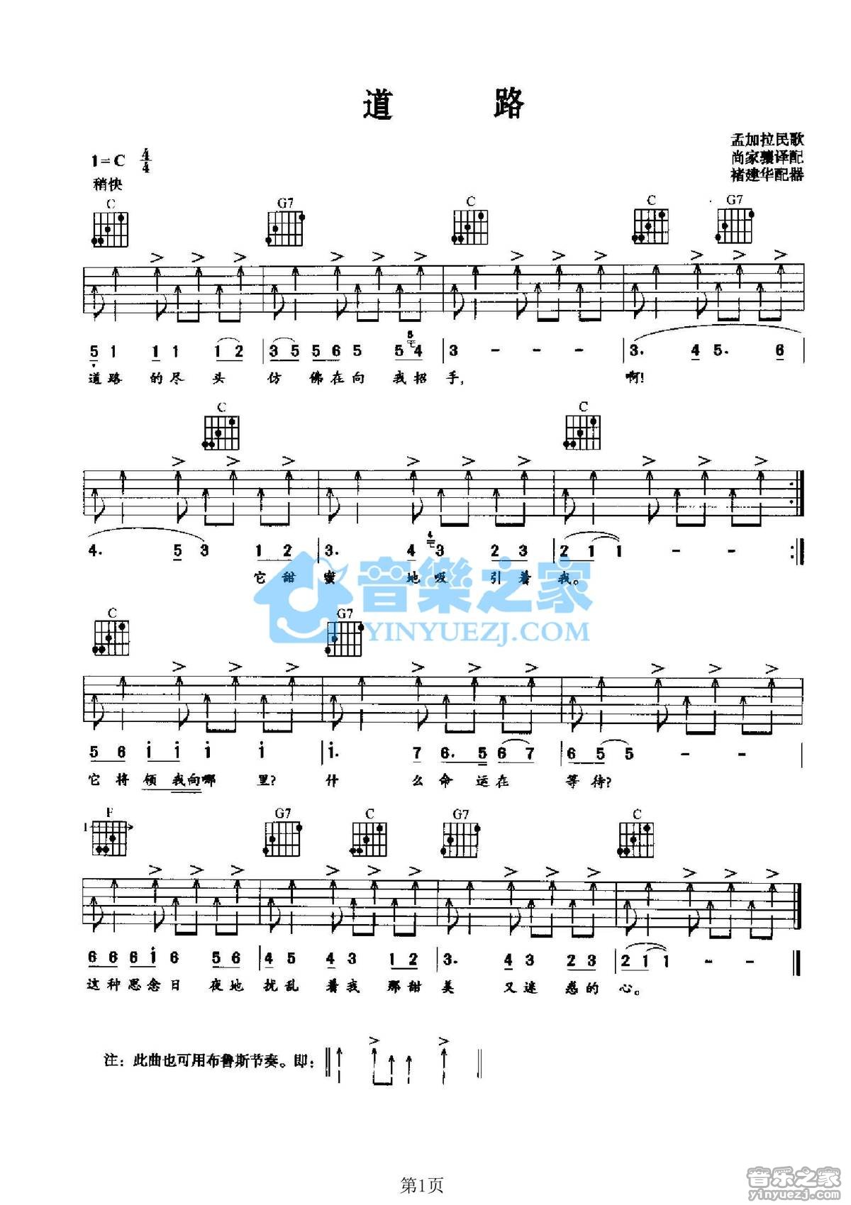 C调版孟加拉民歌《道路》吉他弹唱六线谱...