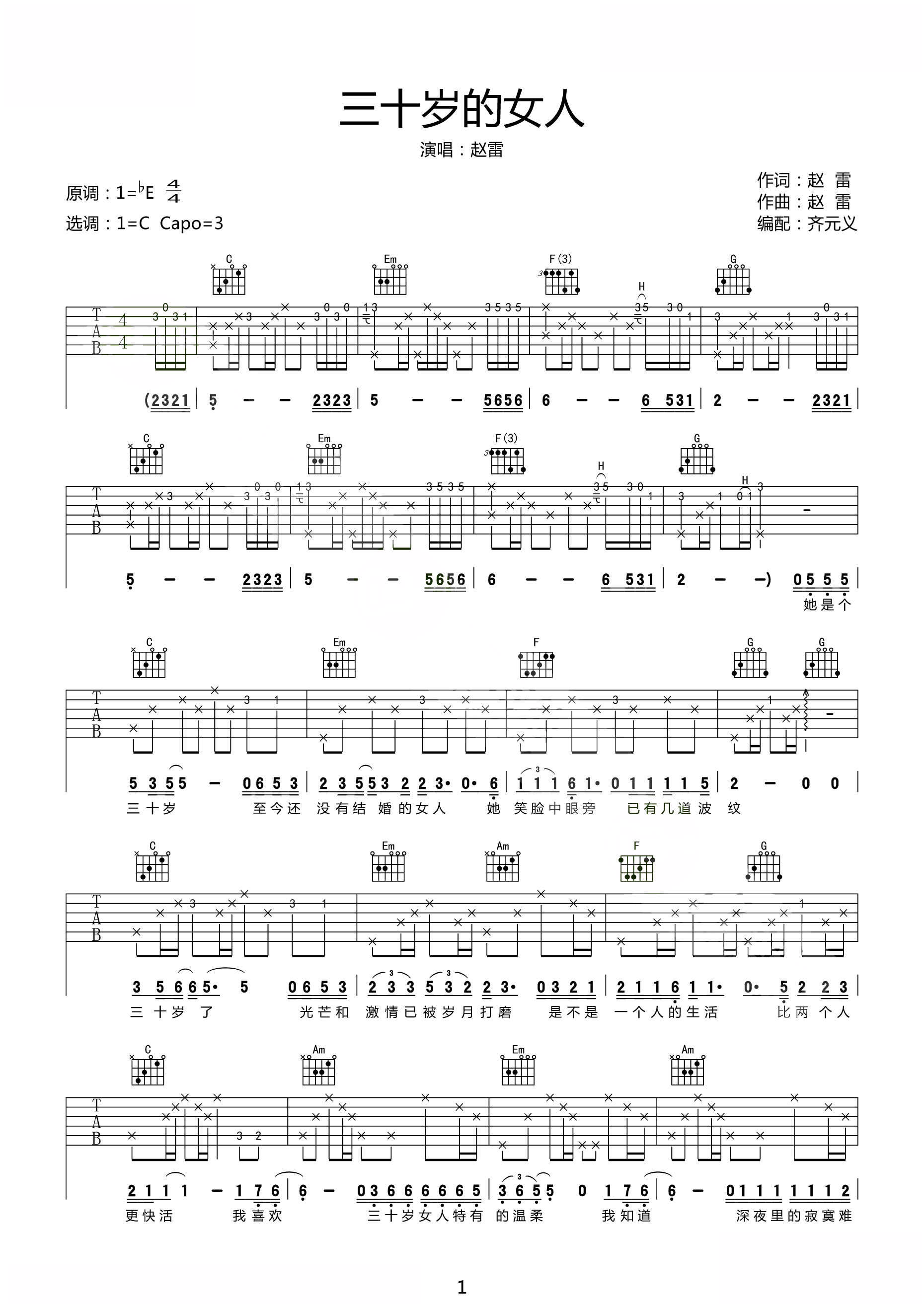 吉他赵雷《三十岁的女人》吉他谱 - 好听到爆炸