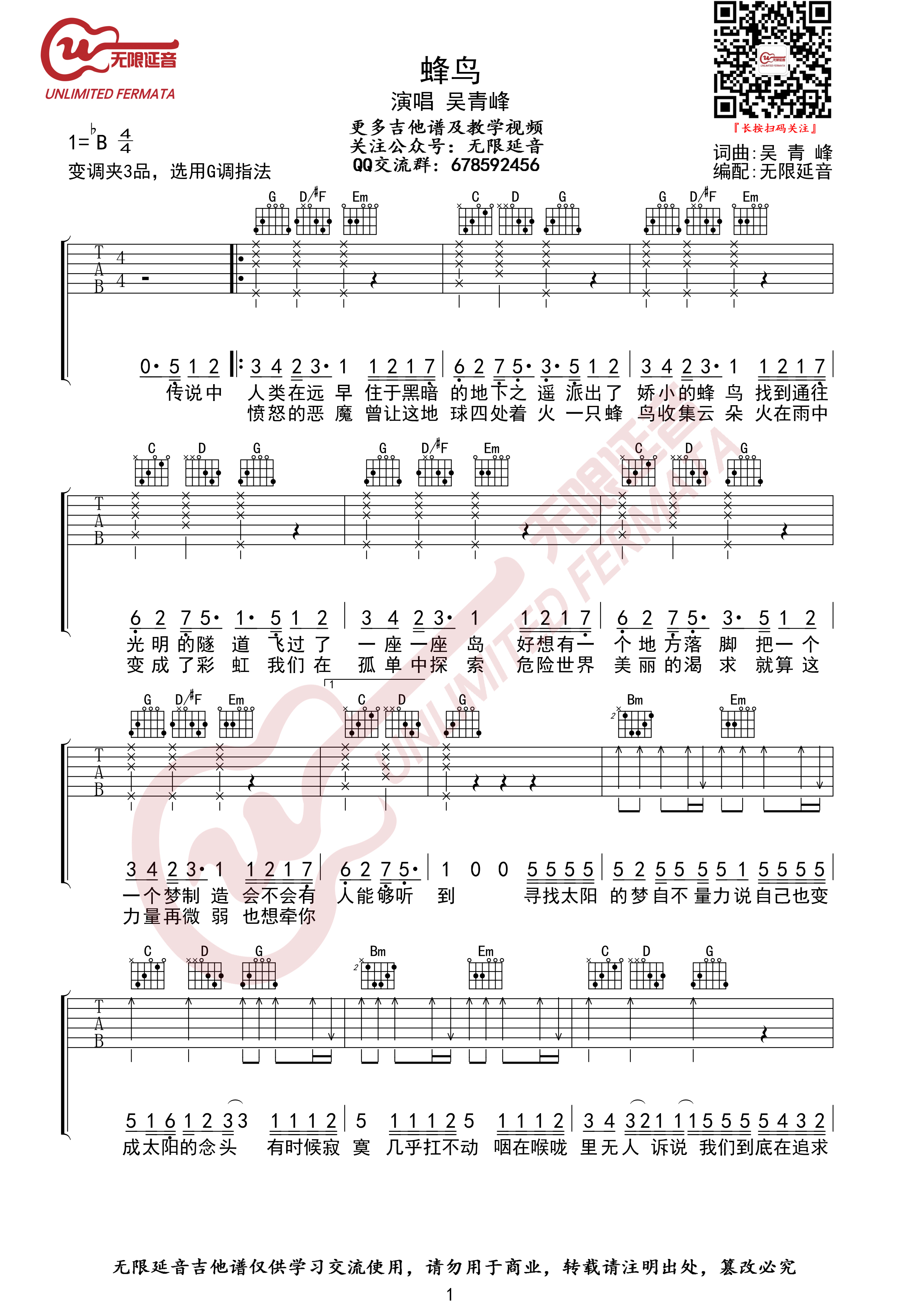 吉他吴青峰《蜂鸟》吉他谱 - 很多人都在弹的版本