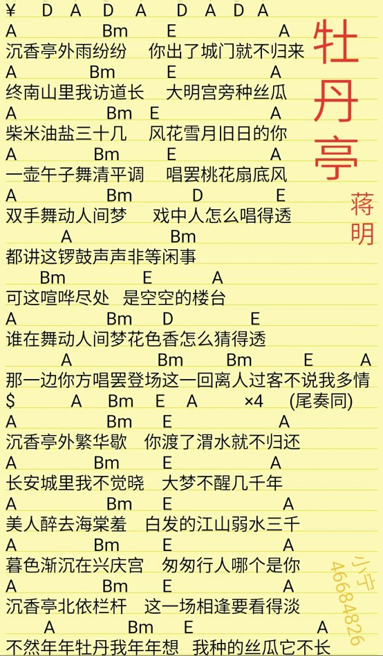 蒋明《牡丹亭》吉他和弦弹唱谱...