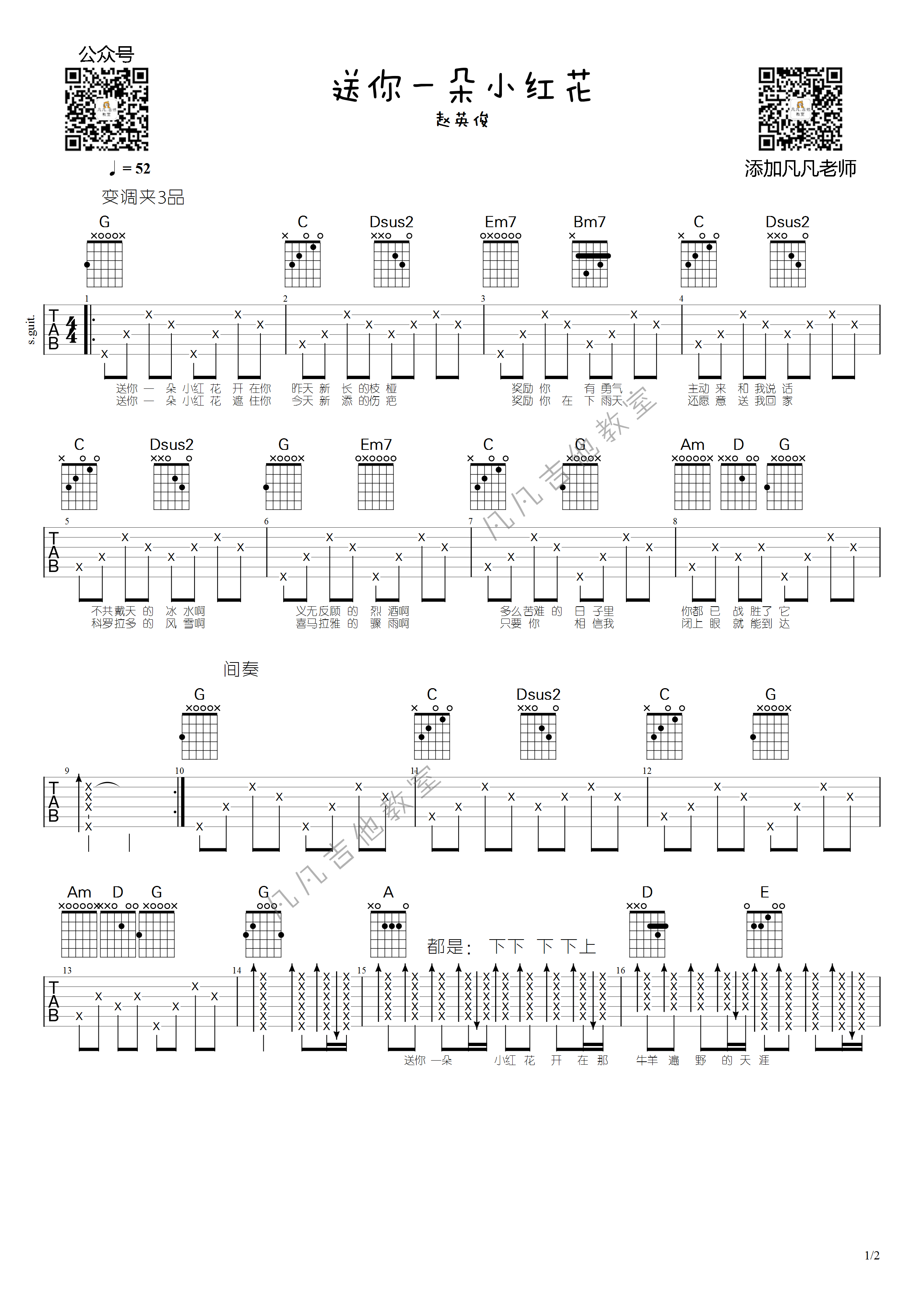 吉他赵英俊《送你一朵小红花》吉他谱 - 小编推荐练习