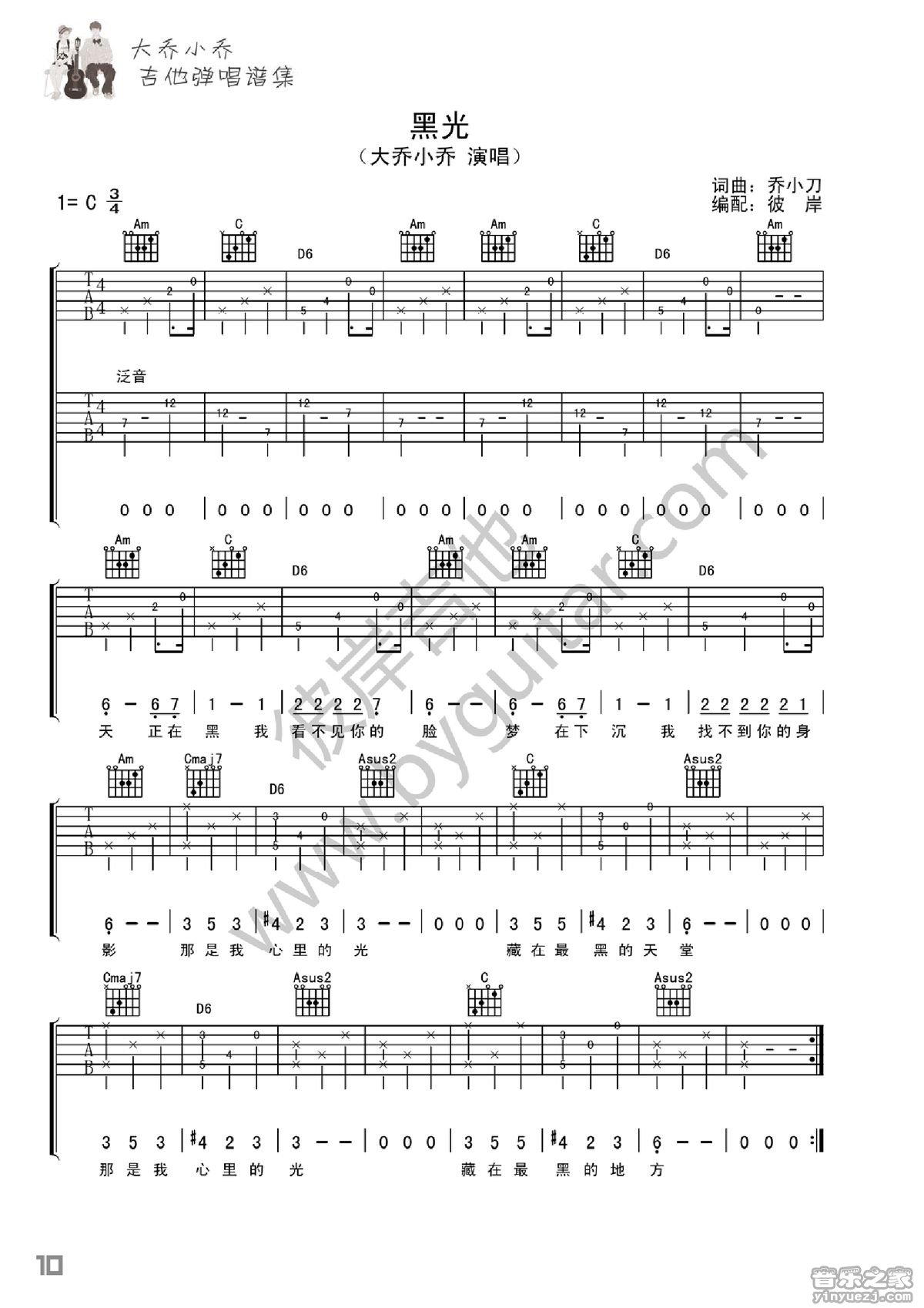 彼岸C调双吉他版大乔小乔《黑光》吉他弹唱六线谱...
