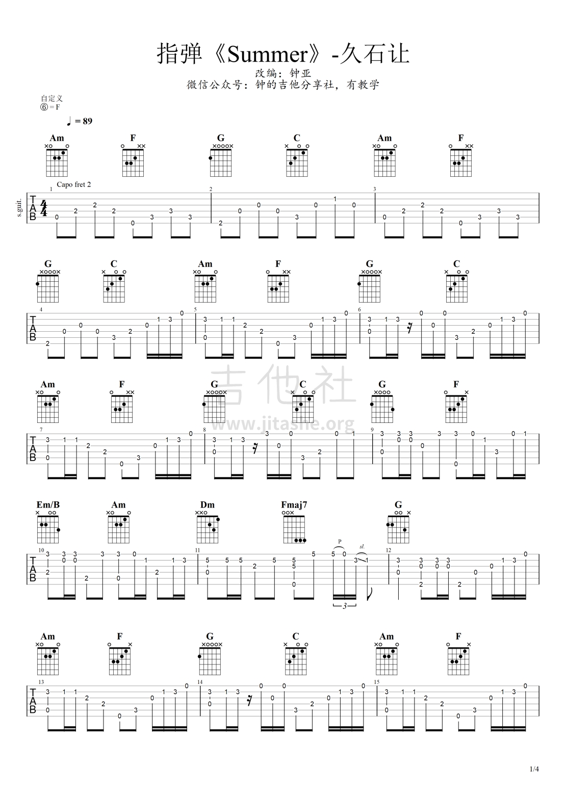 吉他久石让《菊次郎的夏天》吉他谱 - 钟亚编配