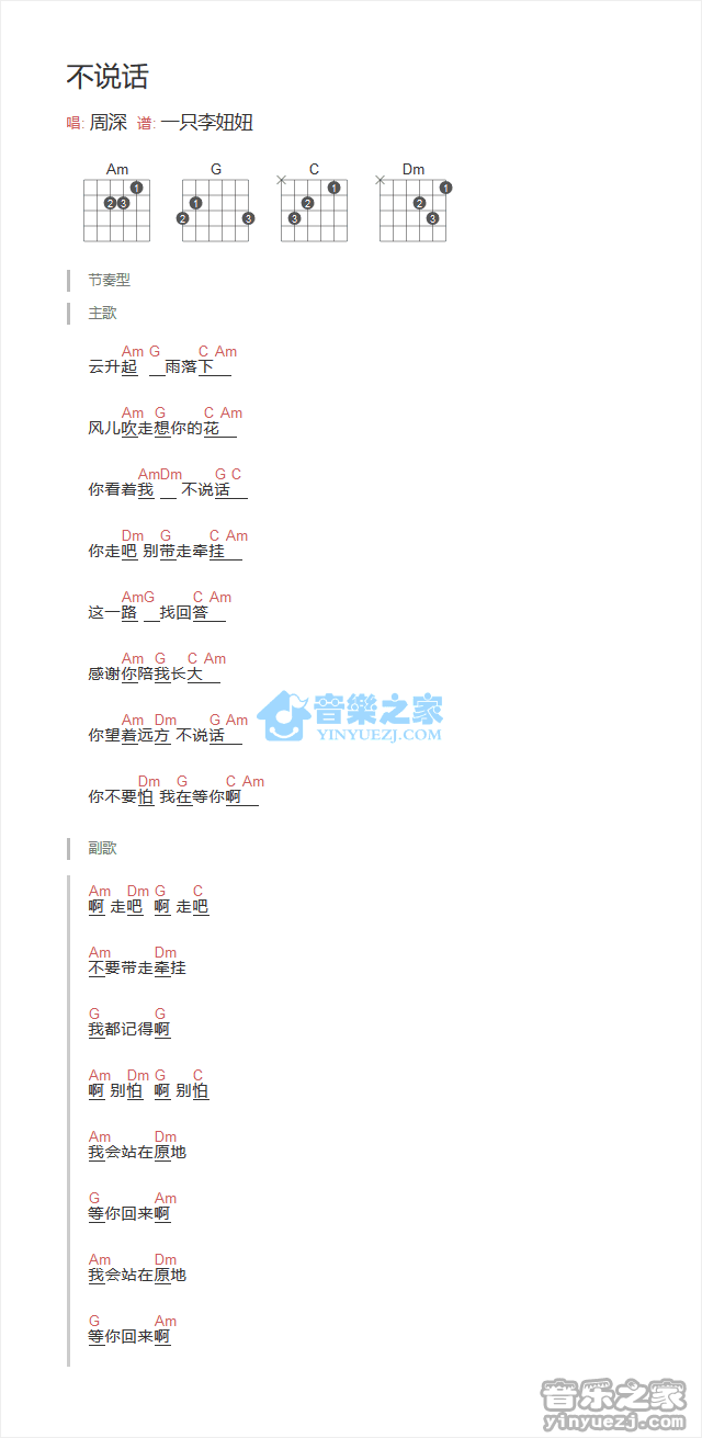 吉他周深《不说话》吉他谱 - 好听到爆炸