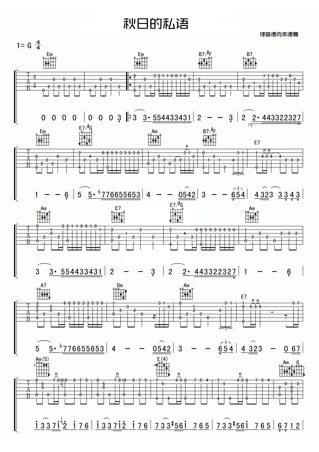 吉他理查德克莱斯曼《秋日的私语》吉他谱 - 免费版