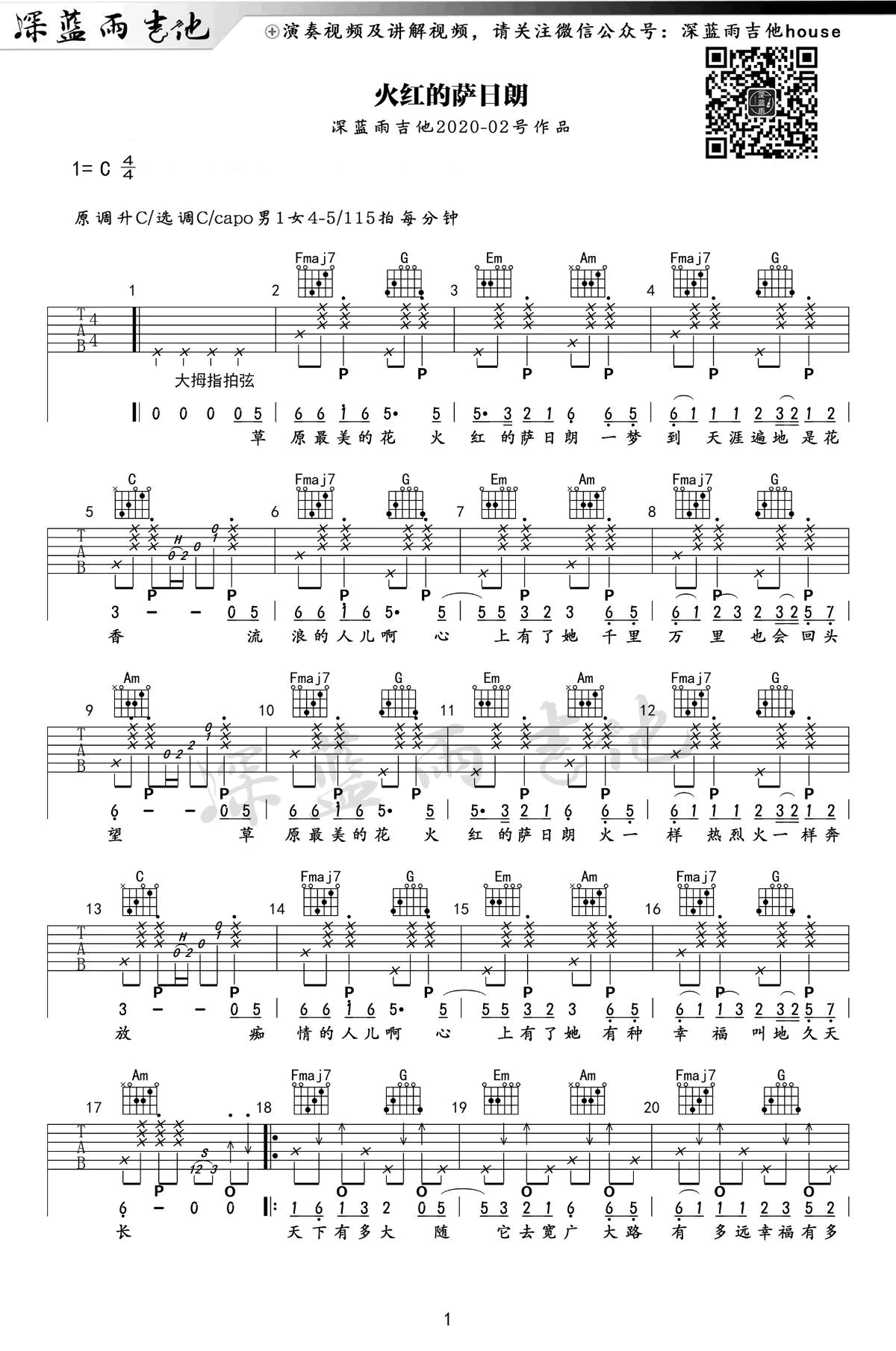 吉他乌兰托娅《火红的萨日朗》吉他谱 - 免费版