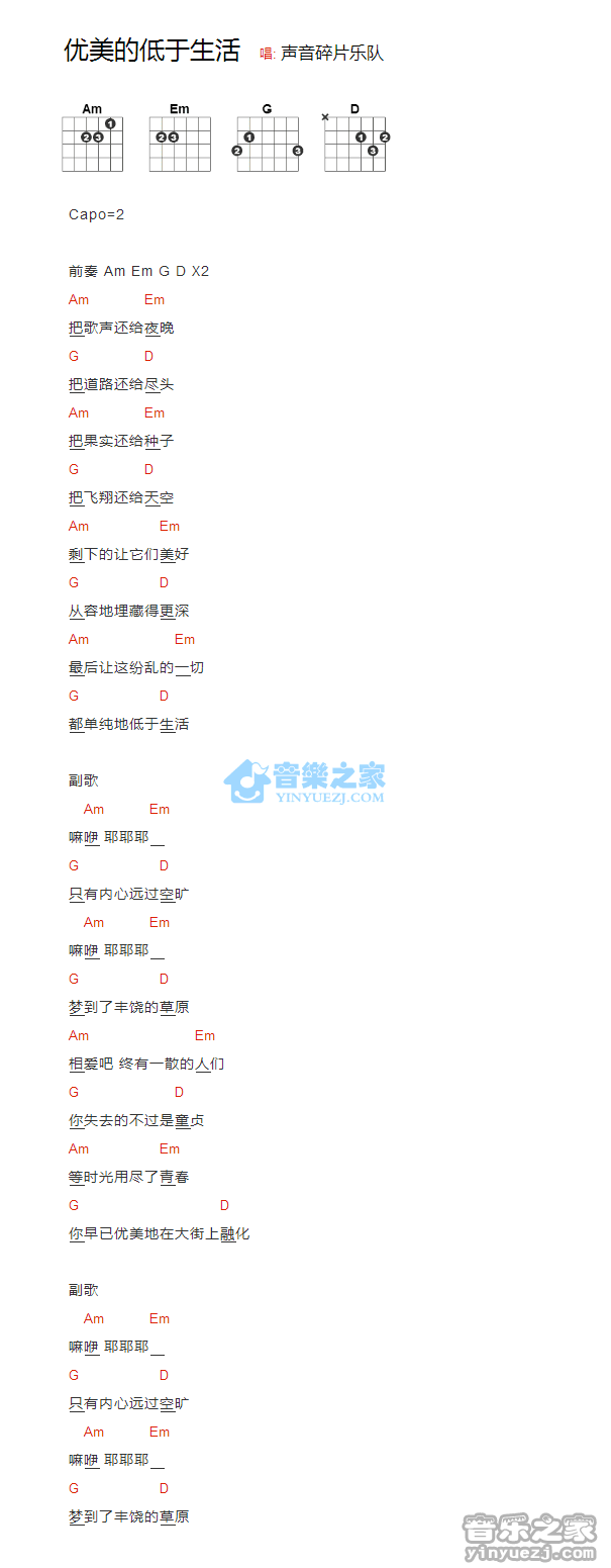 吉他声音碎片乐队《优美的低于生活》吉他谱 - 小编推荐练习
