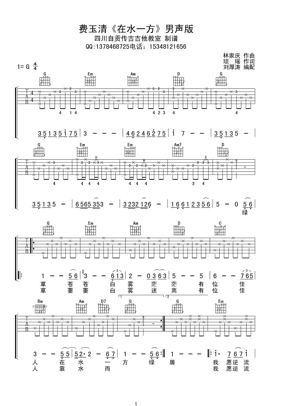 吉他费玉清《在水一方》吉他谱 - 完整版