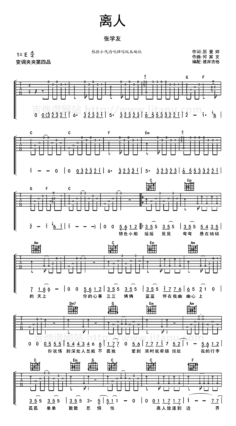 吉他张学友《离人》吉他谱 - 好听到爆炸