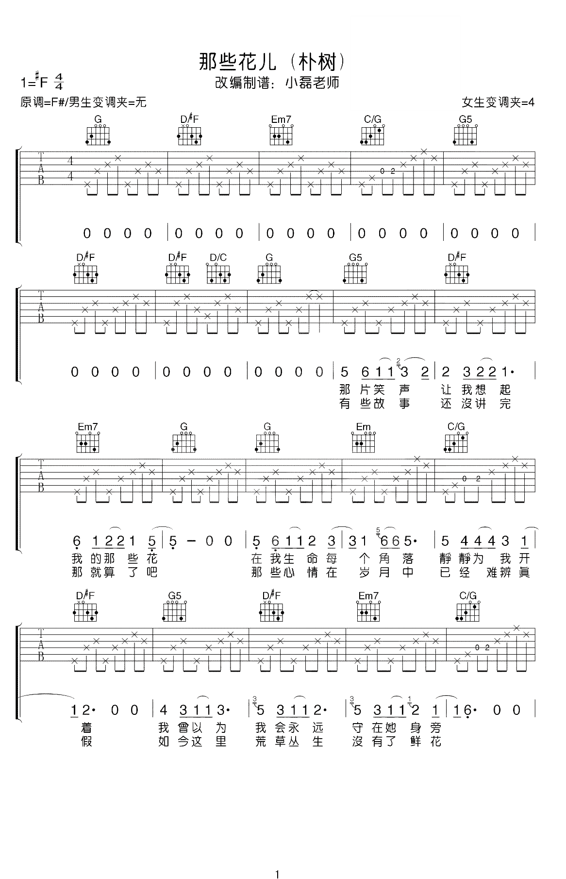 吉他朴树《那些花儿》吉他谱 - 好听到爆炸
