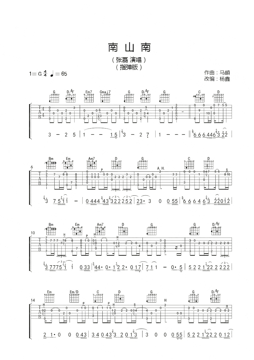 吉他张磊《南山南》吉他谱 - 非常多人都在弹的版本