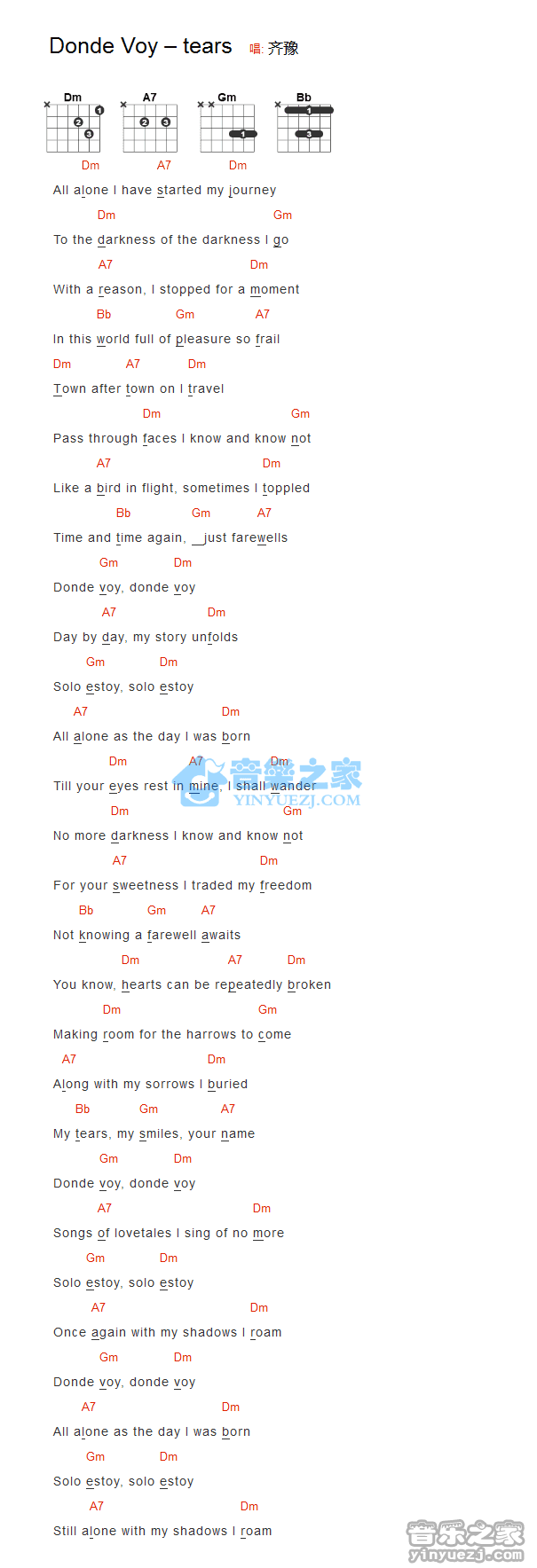 齐豫《Tears-DondeVoy》吉他和弦弹唱谱...