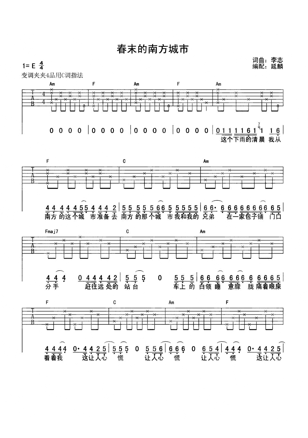 其他编配版本:李志《春末的南方城市》吉他谱...