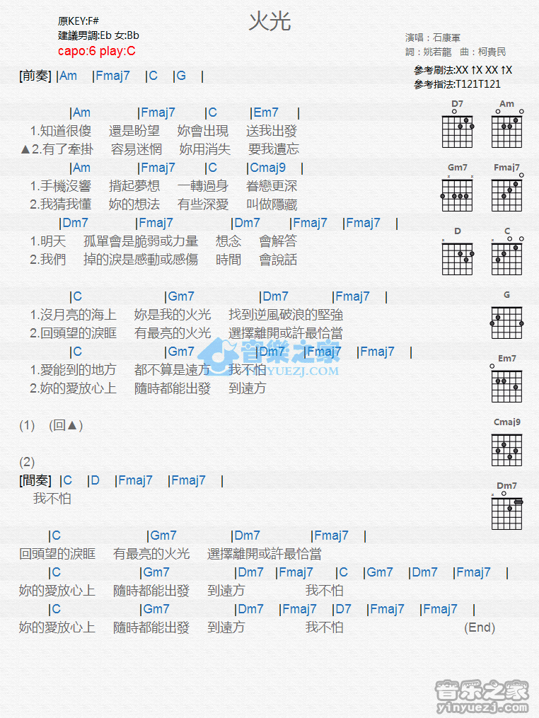 吉他石康军《火光》吉他谱 - 好听到爆炸