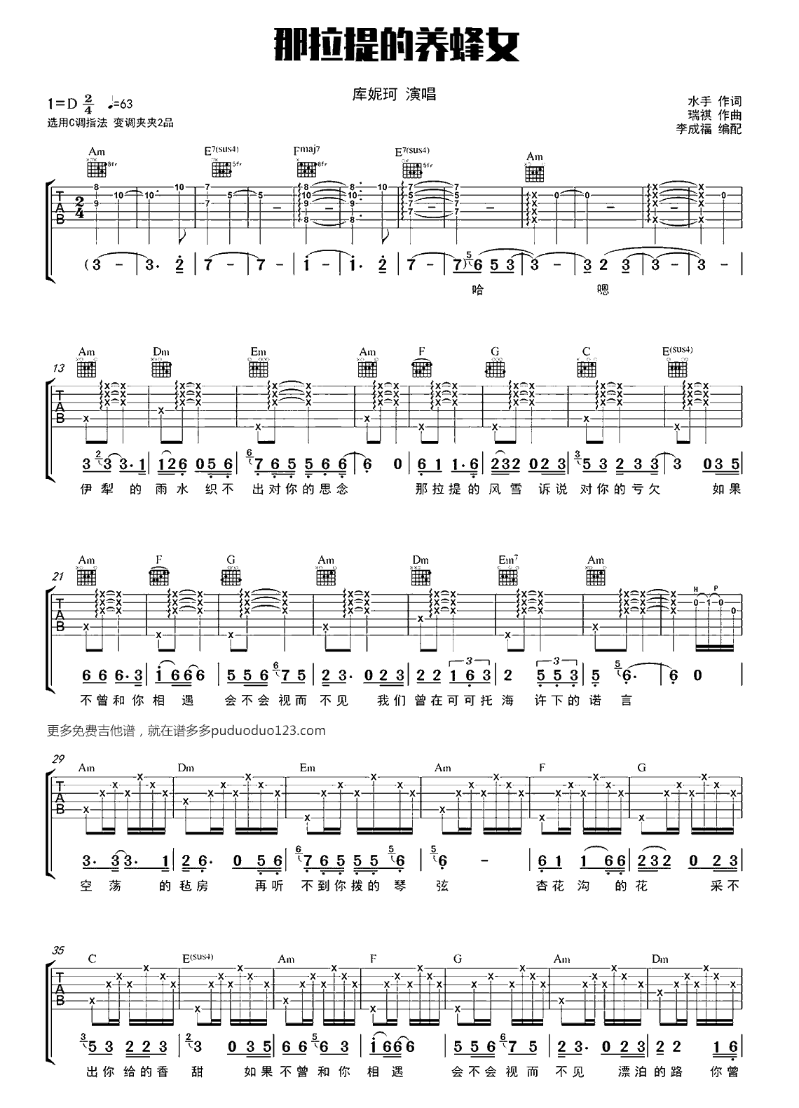 吉他库妮珂《那拉提的养蜂女》吉他谱