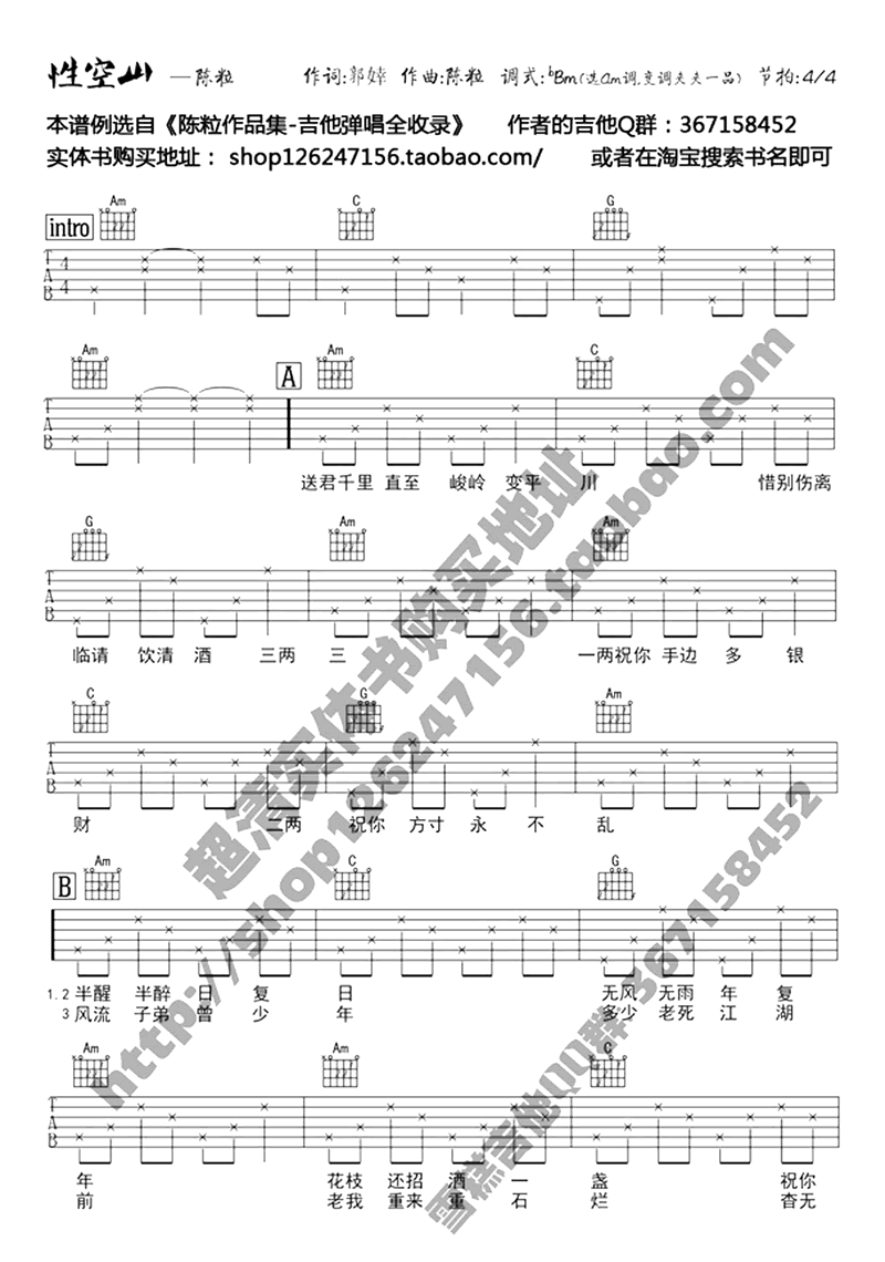 性空山吉他谱,陈粒演唱,变调夹夹一品,选用Am调。整首句句心声,却似狠狠的盯着这世间万物,有不甘,有无奈,有遗憾,祝愿你以后的人生有酒有肉有姑娘,无风无雨年复年。遗憾我不能奉陪,至于苦,都作下酒菜了吧。变调夹夹一品,C调和弦编配。...