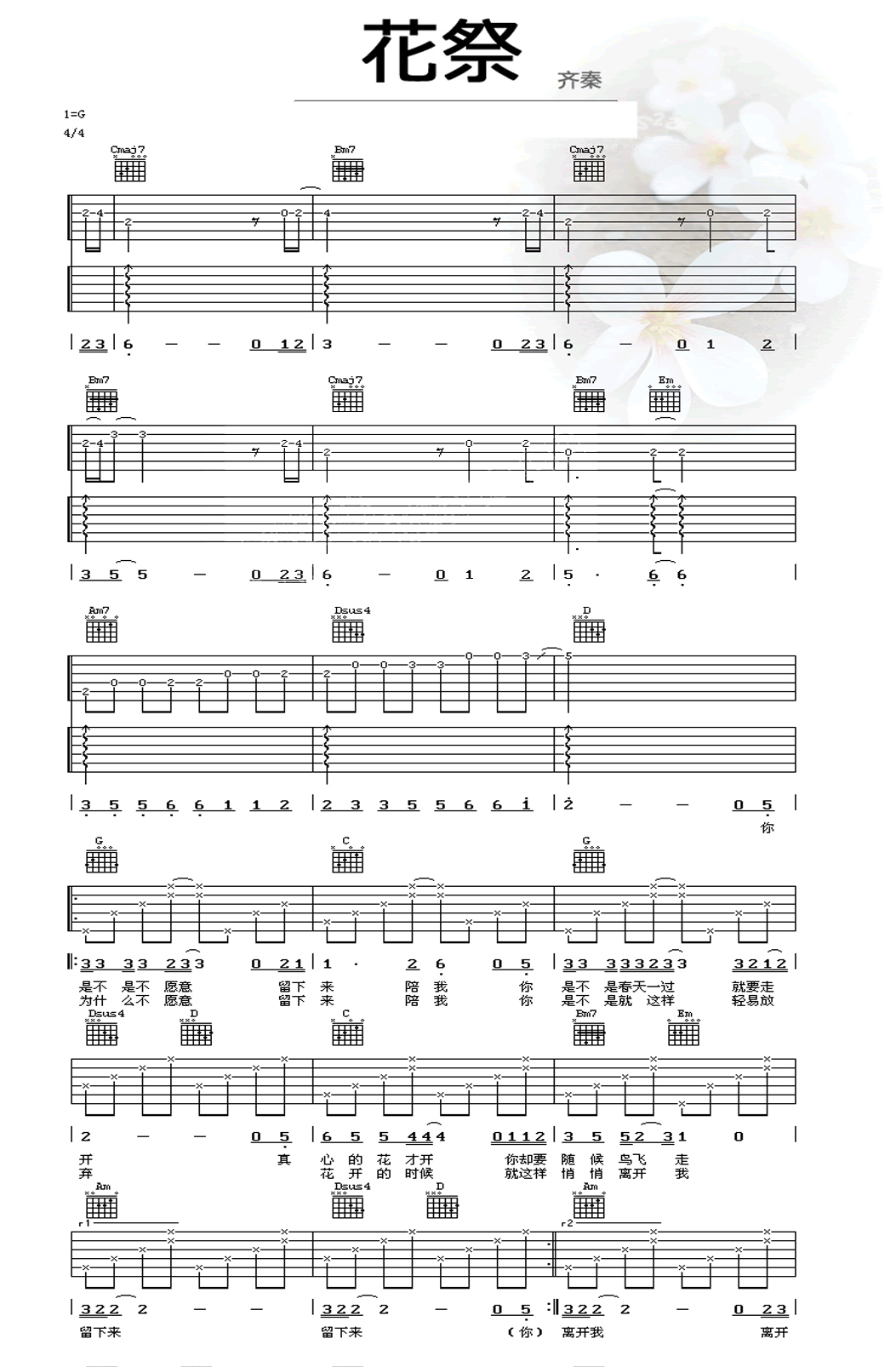 吉他齐秦《花祭》吉他谱 - 很多人都在弹的版本
