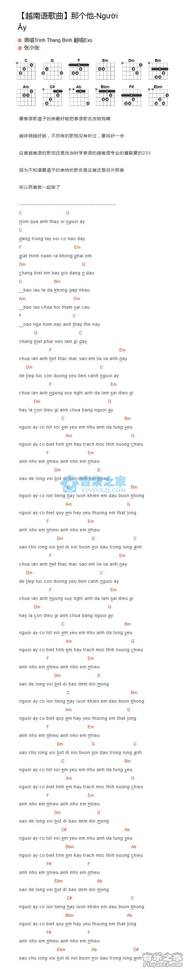 吉他越南语歌曲《Nguoi Ay/那个他》吉他谱 - 免费版