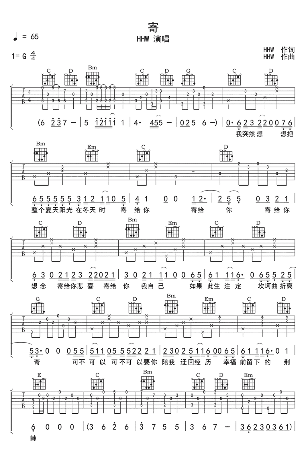 C调版蜉蝣生物》吉他和弦弹唱谱...