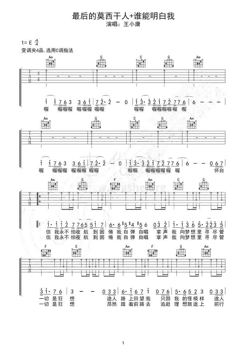 吉他王小康《最后的莫西干人+谁能明白我》吉他谱 - 非常多人都在弹的版本