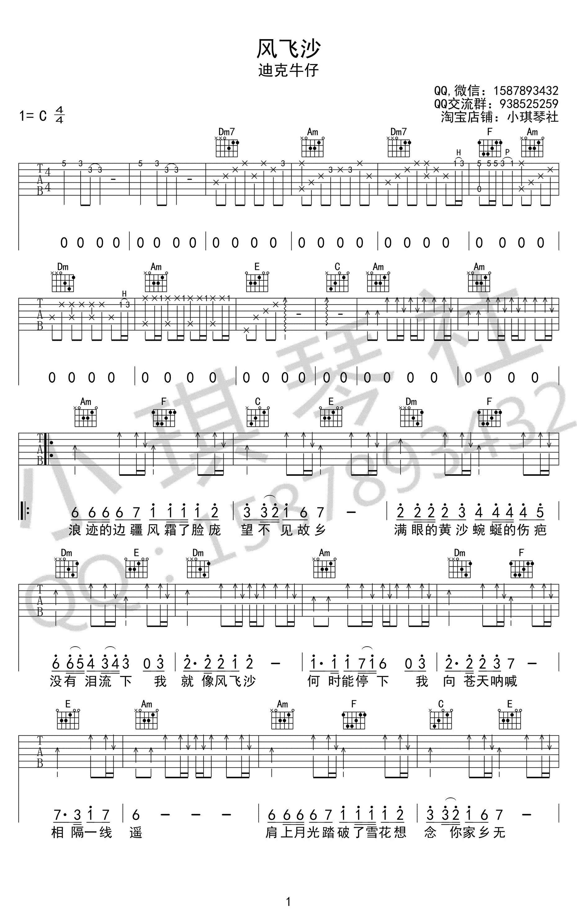 风飞沙吉他谱,C调简单版弹唱谱,迪克牛仔演唱的一首经典老歌,一首励志励情的好歌,改编自台语歌曲《海波浪》,唱出离乡背井的游子心情,也唱出了男人努力打拼的沧桑和魄力。。...