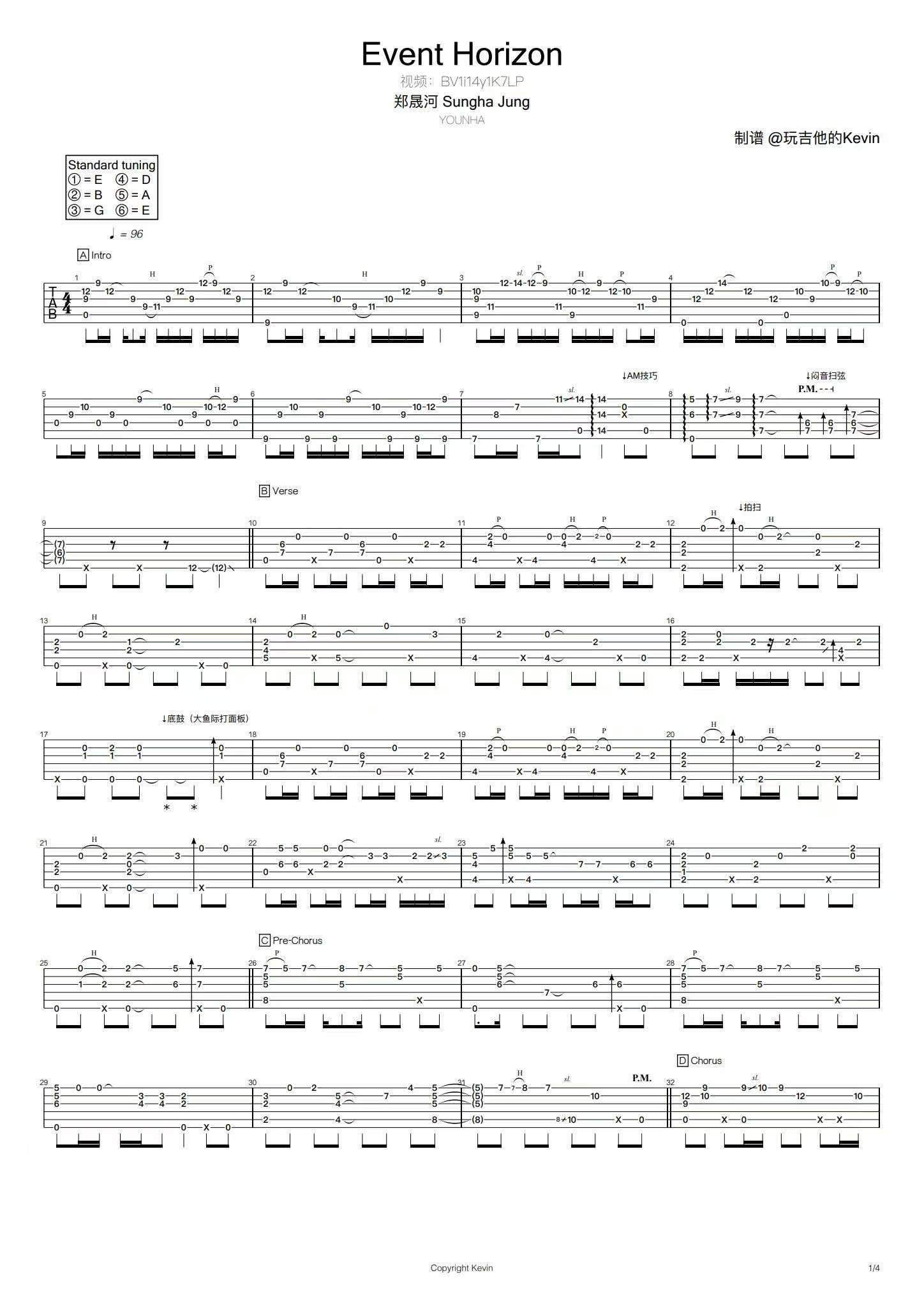 郑最河SunghaJung《EventHorizon》吉他谱,共有4张高清图谱。...
