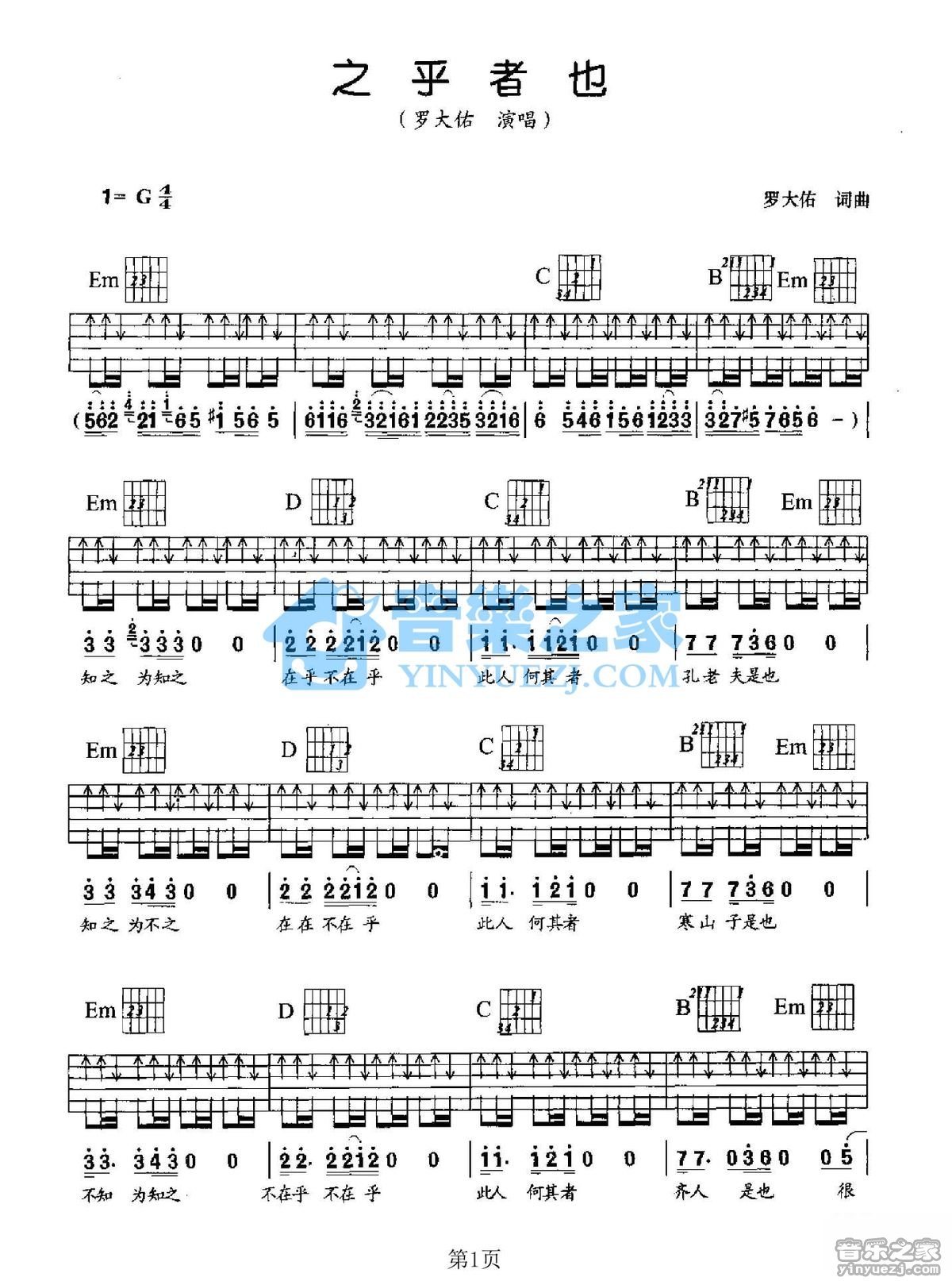 G调版罗大佑《之乎者也》吉他弹唱六线谱...