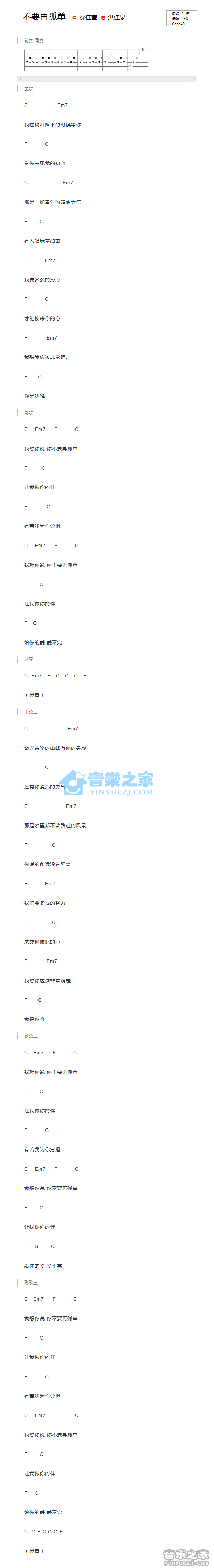 C调版《不要在孤单》吉他和弦弹唱谱...