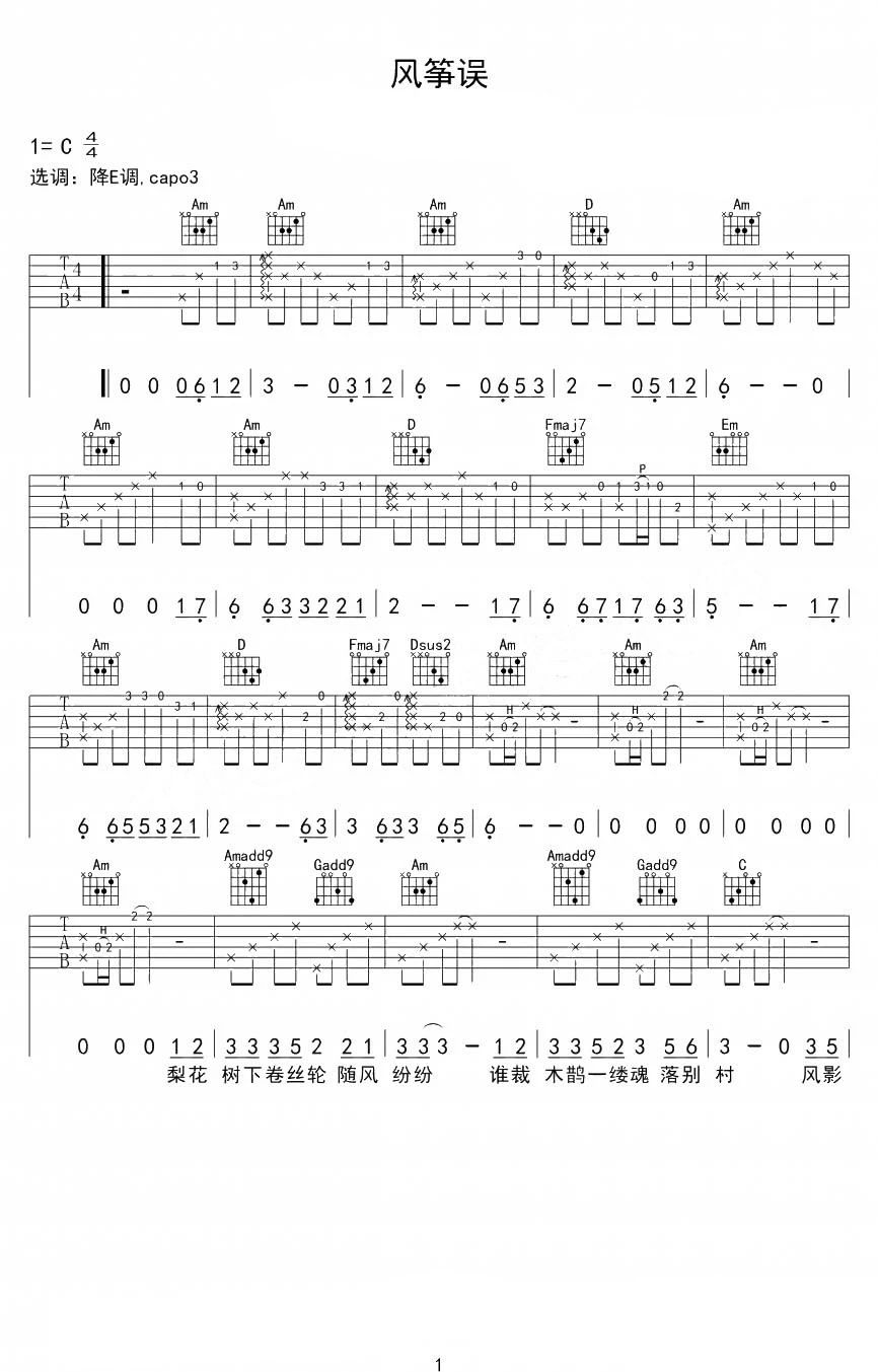 吉他刘珂矣《风筝误》吉他谱 - 推荐版本